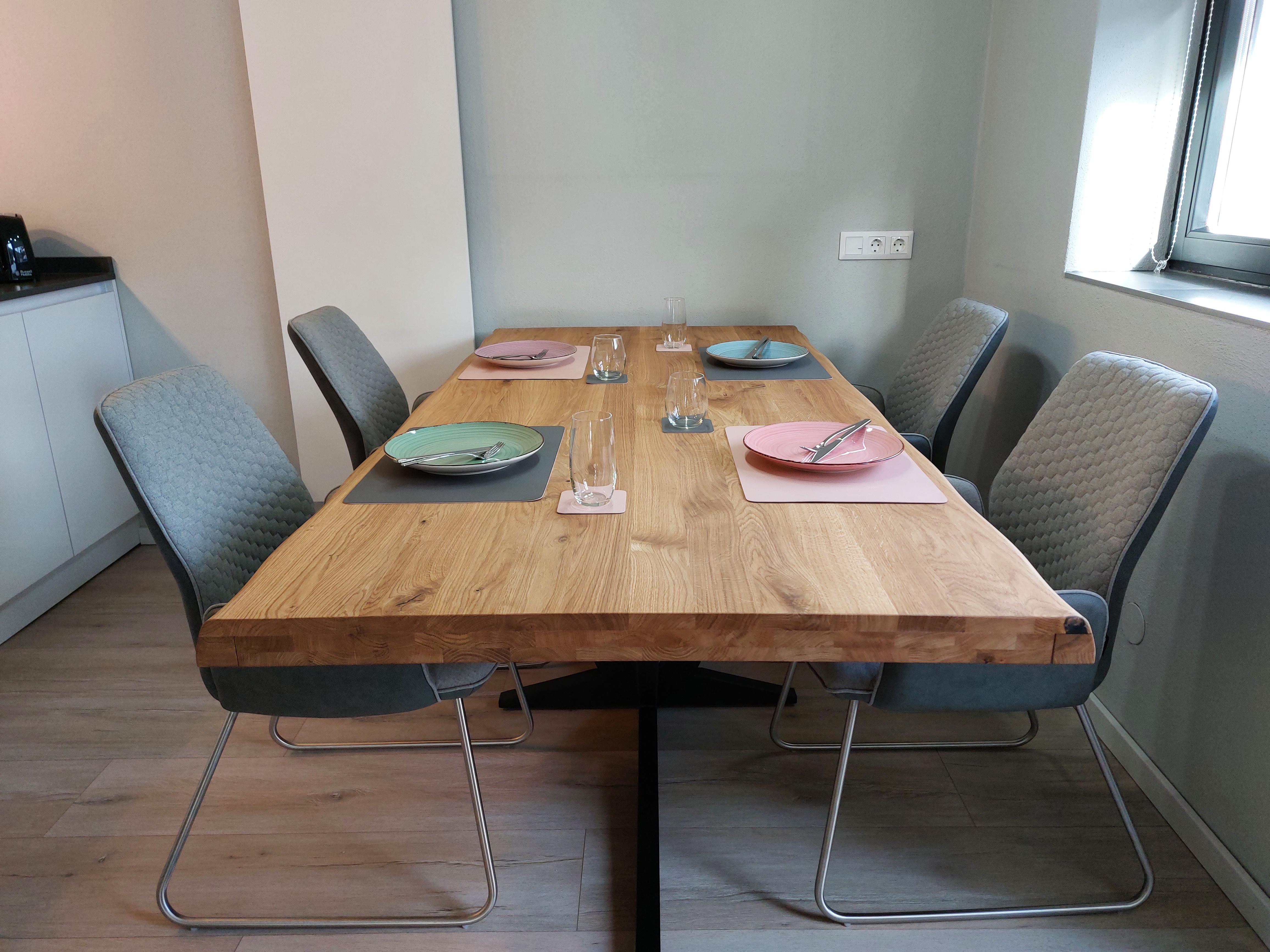 Diese gemütliche Wohnung hat; eine offene Küche mit Miele Haushaltsgeräte: Geschirrspüler, Mikrowelle, Backofen, Induktionsplatte, Dunstabzugshaube, Toaster, Wasserkocher und Nespresso Kaffeemaschine. Eine wunderbare, gemütliche Schlafcouch, auf der Sie sich nach einem Tag in der Natur ausruhen können. Ein Esstisch mit 4 Stühlen, an dem Sie essen und etwas trinken können. Ein Boxspringbett für romantische Nächte und ein Badezimmer en-suite mit Dusche, WC, Kosmetikspiegel und Föhn. Es gibt auch eine gemütliche Südterrasse mit Blick auf die Berge und einen Sitzbereich neben dem Garten, so dass Sie die schöne Umgebung weiterhin genießen können, während Sie einen Snack und ein Getränk genießen und abends den atemberaubenden Sternenhimmel beobachten.