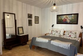 Das Zimmer Hilde mit 24,3 m² (Zimmer 20 m² + Bad 4,3 m²) lädt zu einer Atmosphäre der Freiheit und Erhobenheit ein. Das geräumige Zimmer mit Doppelbett, ist so gestaltet, dass es den Gästen ein Gefühl von Ruhe und Inspiration gibt. Mehrere haben gesagt, dass es ein guter Raum ist, um ein Buchskript zu schreiben.