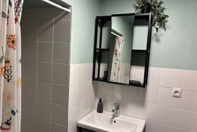 Eigenes Badezimmer mit modernen Annehmlichkeiten.