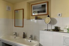 Eigenes Badezimmer mit modernen Annehmlichkeiten.