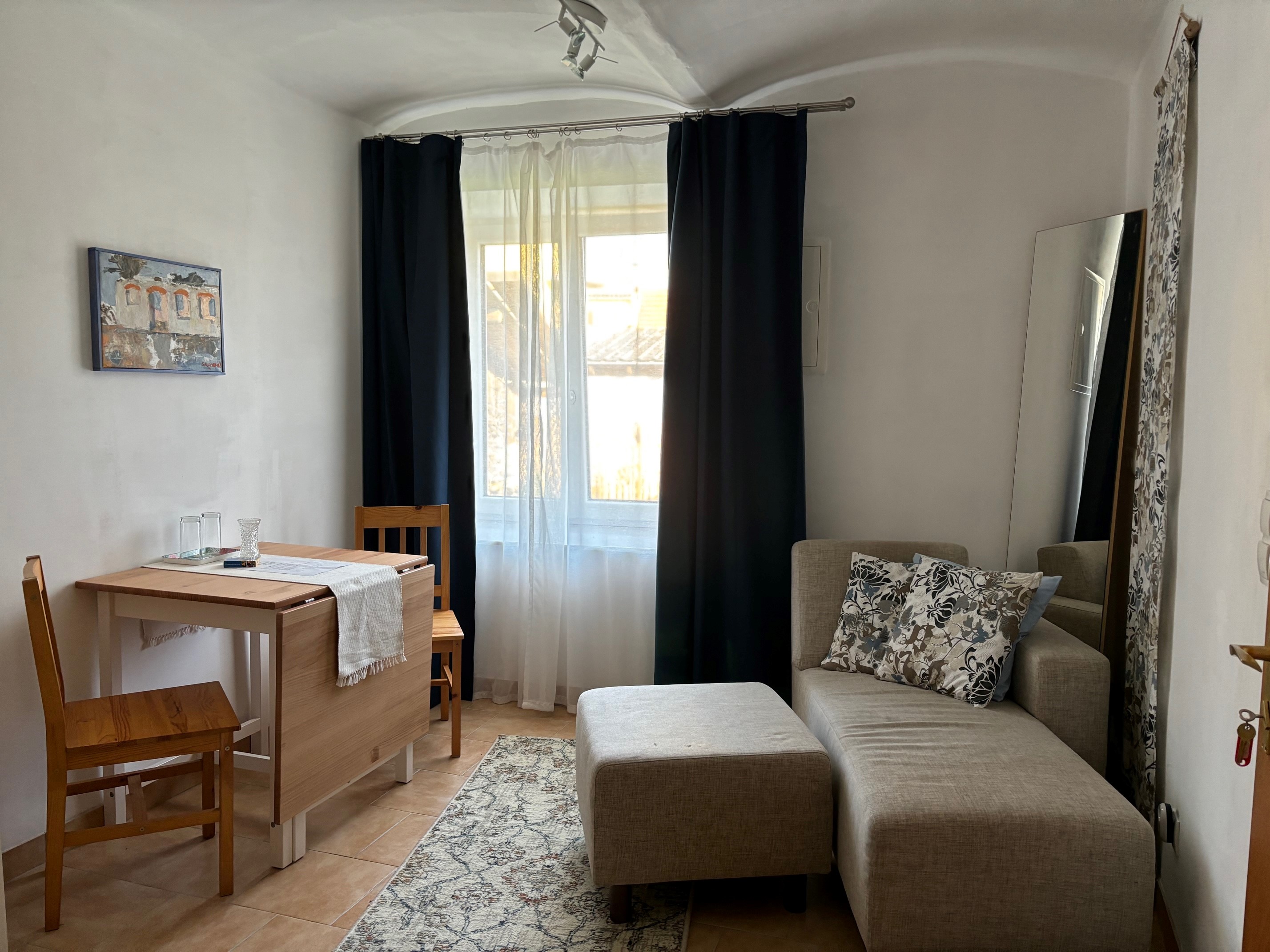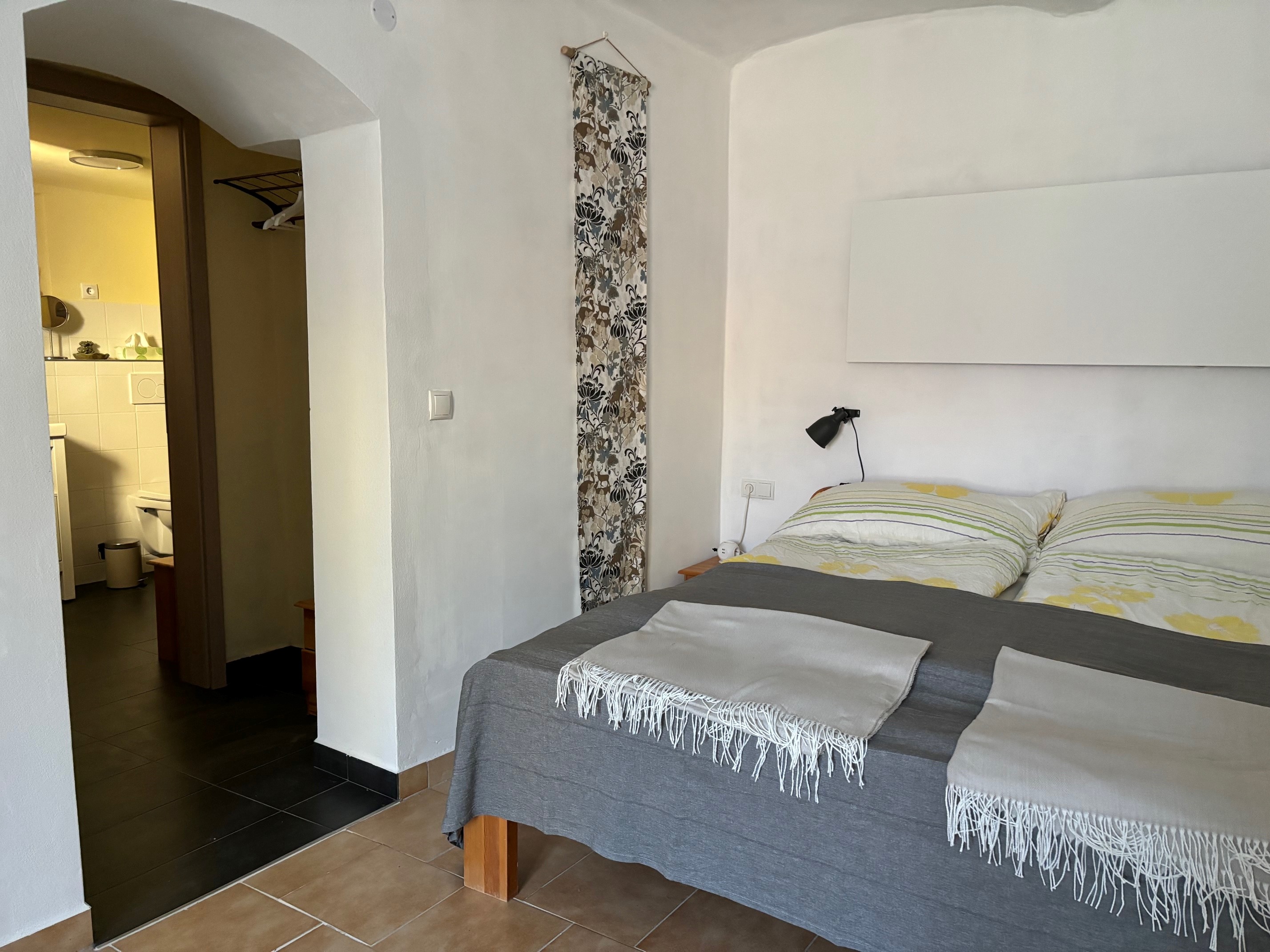 Das Zimmer Lore, ist für diejenigen, die Ruhe und Harmonie suchen. Dieses Zimmer bietet eine helle und einladende Atmosphäre, die Sie sofort zu Hause fühlen lässt. Ein bequemes Doppelbett, ergänzt durch die Möglichkeit, ein Zusatzbett hinzuzufügen, macht dieses Zimmer ideal für Familien oder Gäste, die zusätzlichen Raum wünschen. Die private Terrasse bietet eine einzigartige Gelegenheit, die ruhigen Morgen oder stillen Abende zu genießen.