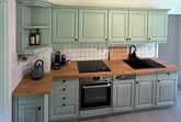 Voll ausgestattete Küche: Die Küche ist komplett funktional mit Herd, Ofen, Esstisch und allem, was Sie zum Kochen benötigen.