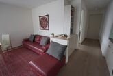 Ein bequemes Ledersofa läd zum Entspannen und Reflektieren ein, der geräumiger Esstisch kann nicht nur für kulinarische Köstlichkeiten sondern auch für etwaige Arbeiten verwendet werden.