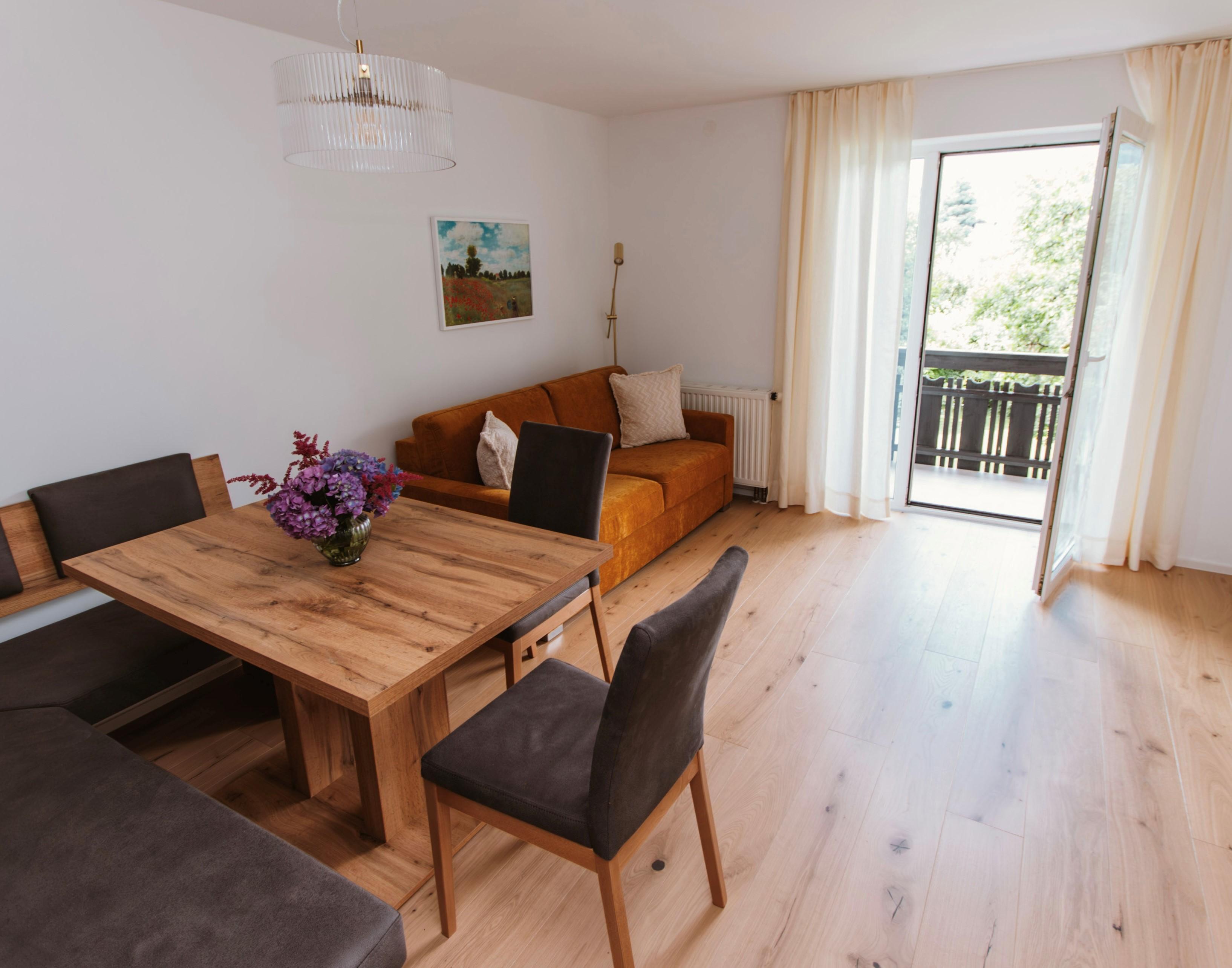 Unsere gemütliche Wohnung besticht durch ihre komfortable Einrichtung und deren ruhige Lage im Zentrum Döbriachs. Der große Balkon lädt dazu ein, die frische Luft und den herrlichen Ausblick auf viel Grün zu genießen - ob bei einem gemütlichen Frühstück oder einem Glas Wein zum Sonnenuntergang.