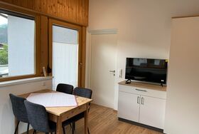 Der Hauseingang zur Ferienwohnung ist vom Geschäftseingang getrennt und führt zunächst zu einem Abstellplatz, der für Skiausrüstung oder Räder genutzt werden kann. Anschließend gelangen Sie über eine Treppe in den ersten Stock zu Ihrer Ferienwohnung, die vollkommen separat liegt.