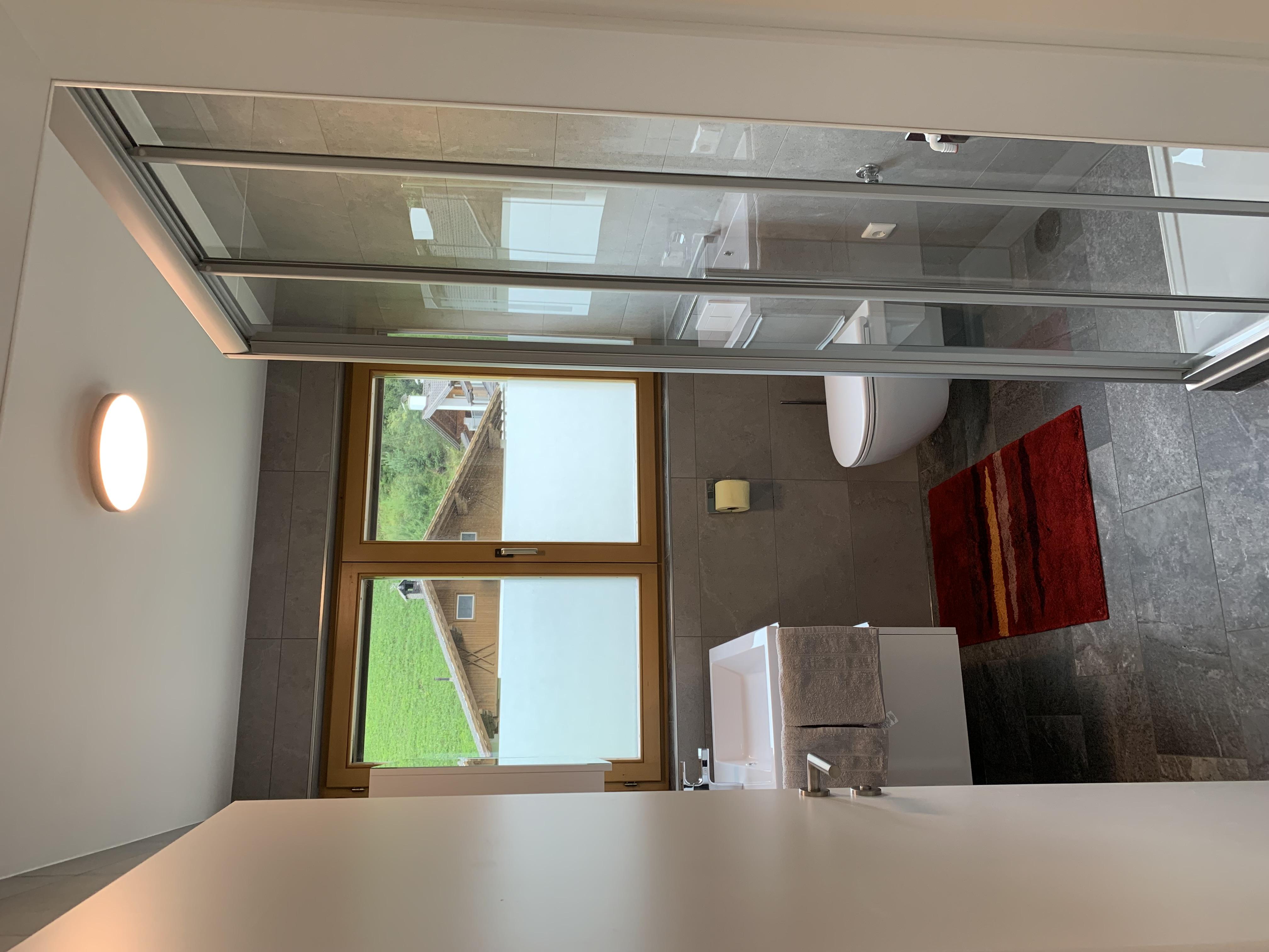 Die Ferienwohnung befindet sich im ersten Stock des Hauses. Darunter betreibt die Gastgeberin das Schuhgeschäft Schuhe Oberthaler, das mit Sicherheit die passenden Wanderschuhe für Ihre Bergtouren bereithält :-)