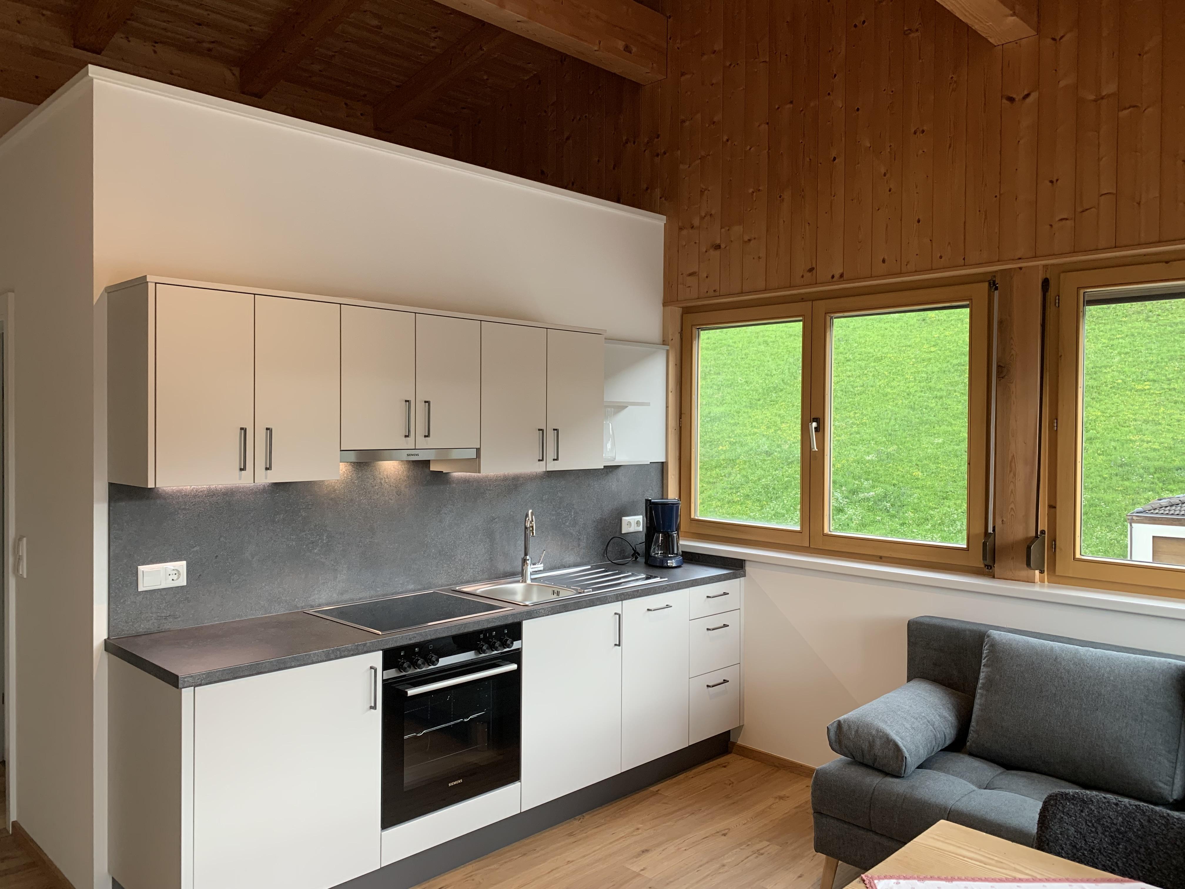 Diese moderne Ferienwohnung besteht aus einem Wohn- und Esszimmer mit Küche, einem Badezimmer, einem Schlafzimmer und einer gemütlichen Loggia. Außerdem ist eine Garderobe, ein Abstellplatz für Räder bzw. Skiausrüstung sowie ein Parkplatz vorhanden.