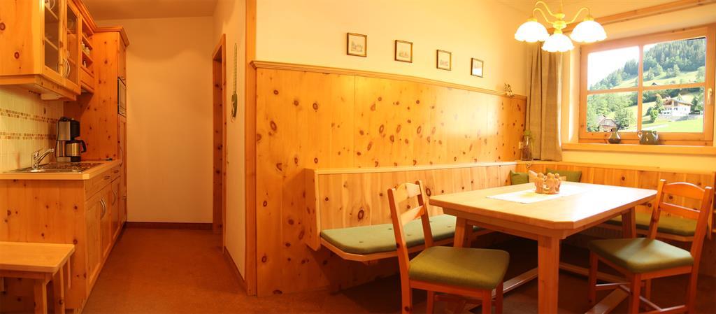 Ausstattung: einladender Vorraum, große Wohnküche mit Eckbank, Schlafzimmer mit Doppelbett und einem Einzelbett, Bad mit Tropenregen-Dusche und Toilette, Balkon mit Tisch und Stühlen und Liegestühlen, TV mit Sat und Radio Frühstück: im Kreise der Lieben in der Ferienwohung mit hauseigenen Produkten, oder in Gesellschaft im benachbarten Hotel Kärntnerhof
