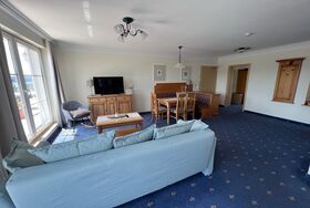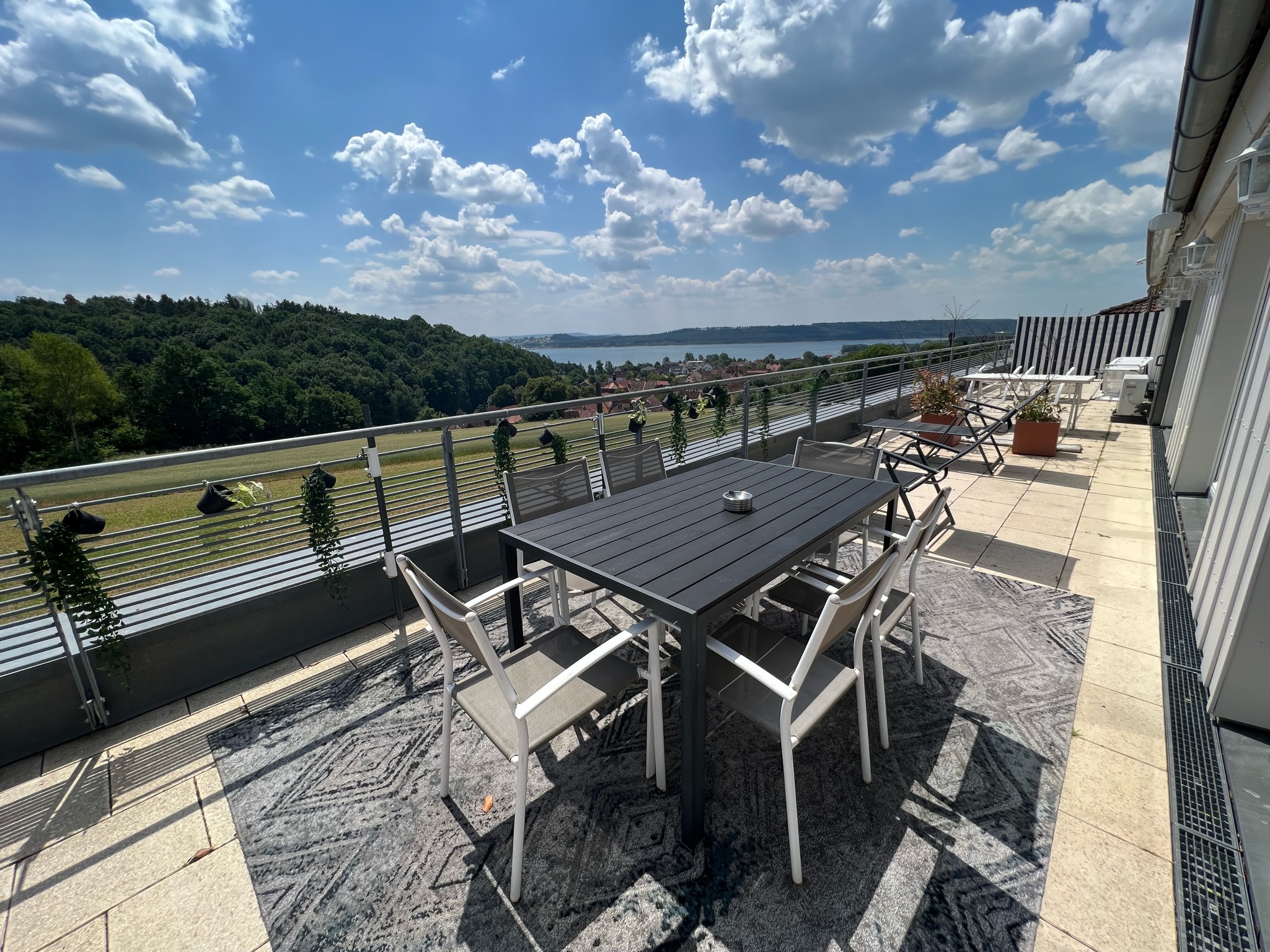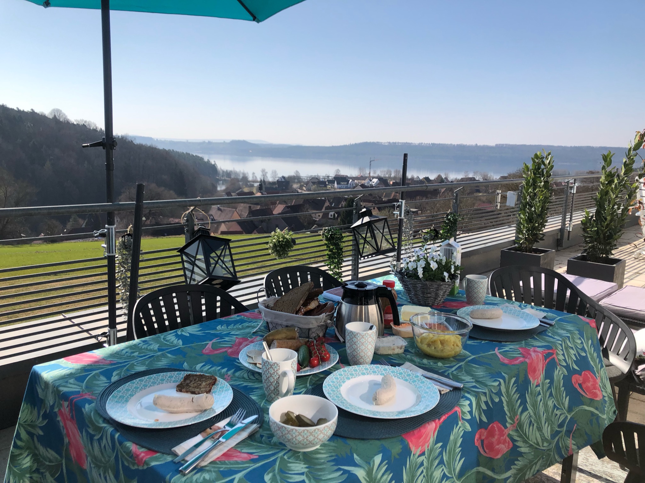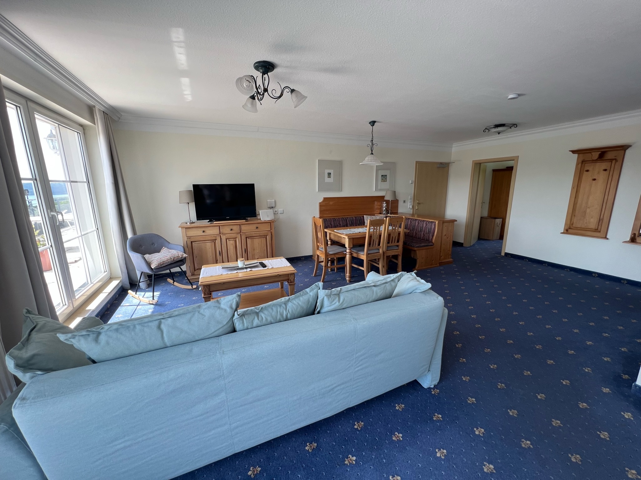 Das Appartement verfügt über zwei Schlafzimmer und ein Wohnzimmer, ein zusätzliches Gäste-WC, eine Terrasse mit Seeblick, eine voll ausgestattete Küche sowie kostenfreie Pflegeprodukte.