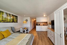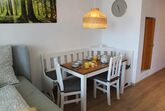 Es steht Ihnen ein Doppelbett mit den Maßen 1,80 x 2,00 m zur Verfügung. Ein Highlight für Familien ist das großzügige Hochbett mit zwei Liegeflächen mit den Maßen 1,20 x 1,80 und 0,70 x 1,20 m. Die Küchenzeile ist komplett ausgestattet mit Induktionskochfeld, Spüle, Kühlschrank inkl. Gefrierfach, Toaster, Wasser- und Eierkocher, Kaffeemaschine und allen möglichen Kochutensilien, sowie Geschirr. Eine Eckbank bietet genügend Platz für die gesamte Familie am Tisch. Sie Verfügen über kostenloses WLAN und einen großen Flachbildfernseher in der Wohnung. Der gemütlich gestaltete Balkon mit Blick in Süd-West Richtung lädt zum Verweilen ein.
