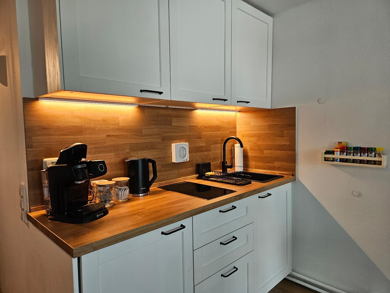 Für den guten Start in den Tag steht Ihnen eine Kaffeemaschine Bosch Tassimo mit ein paar Kapseln bei Anreise zur Verfügung. Ebenfalls einige Teebeutel Kamille, Pfefferminz und Früchte.