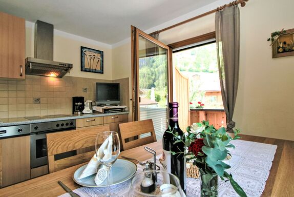 Paradiso, 4-Zimmer-Wohnung 100 m2 im 1. Stock. Geräumig, komfortabel und gemütlich eingerichtet: 3 Doppelzimmer, jedes Zimmer mit Dusche/WC und TV. Ausgang zum Balkon. Offene Küche (Backofen, Geschirrspüler, 4 Glaskeramikplatten, Toaster, Wasserkocher, Mikrowelle, elektrische Kaffeemaschine) mit Esstisch und Sat-TV. Sep. WC. Balkonmöbel, Gartengrill. Panoramasicht auf die Berge. Zur Verfügung: Internet (Wireless LAN, gratis). Bitte beachten: Nichtraucher-Unterkunft.