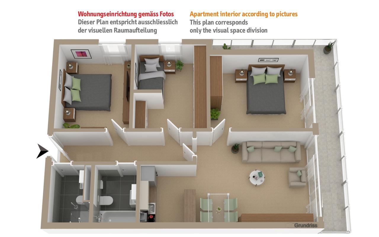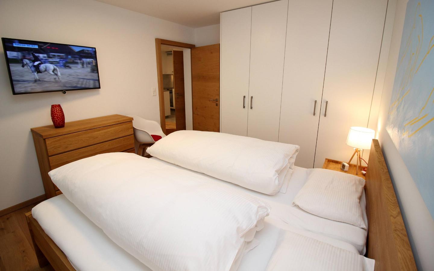 Neue, modern renovierte 3 - Zimmer Ferienwohnung im 4. Stock. Die Einrichtung wurde mit viel Liebe zum Detail ausgewählt. Auch hochwertige TV-Geräte in Schlaf- und Wohnzimmer fehlen nicht. Das Ferienappartement verfügt über Wohn- /Esszimmer, offene, gut ausgestattete Küche sowie Balkon über zwei Seiten. 2 Doppelschlafzimmer mit TV und 1 Einzelschlafzimmer. 1 Bad/DU/WC sowie 1 DU/WC. Autogaragenplatz, Lift.
