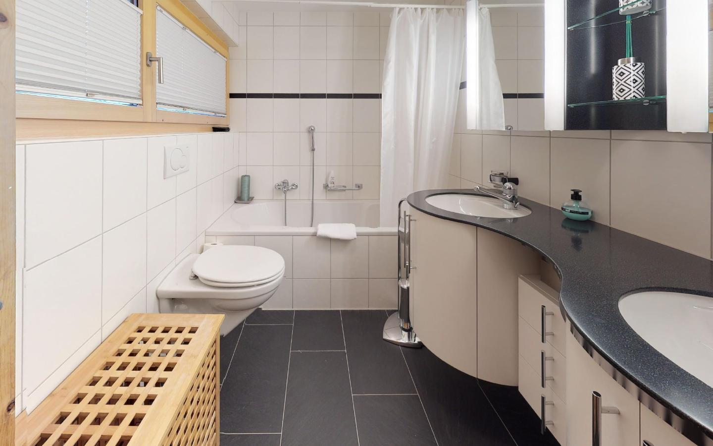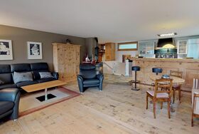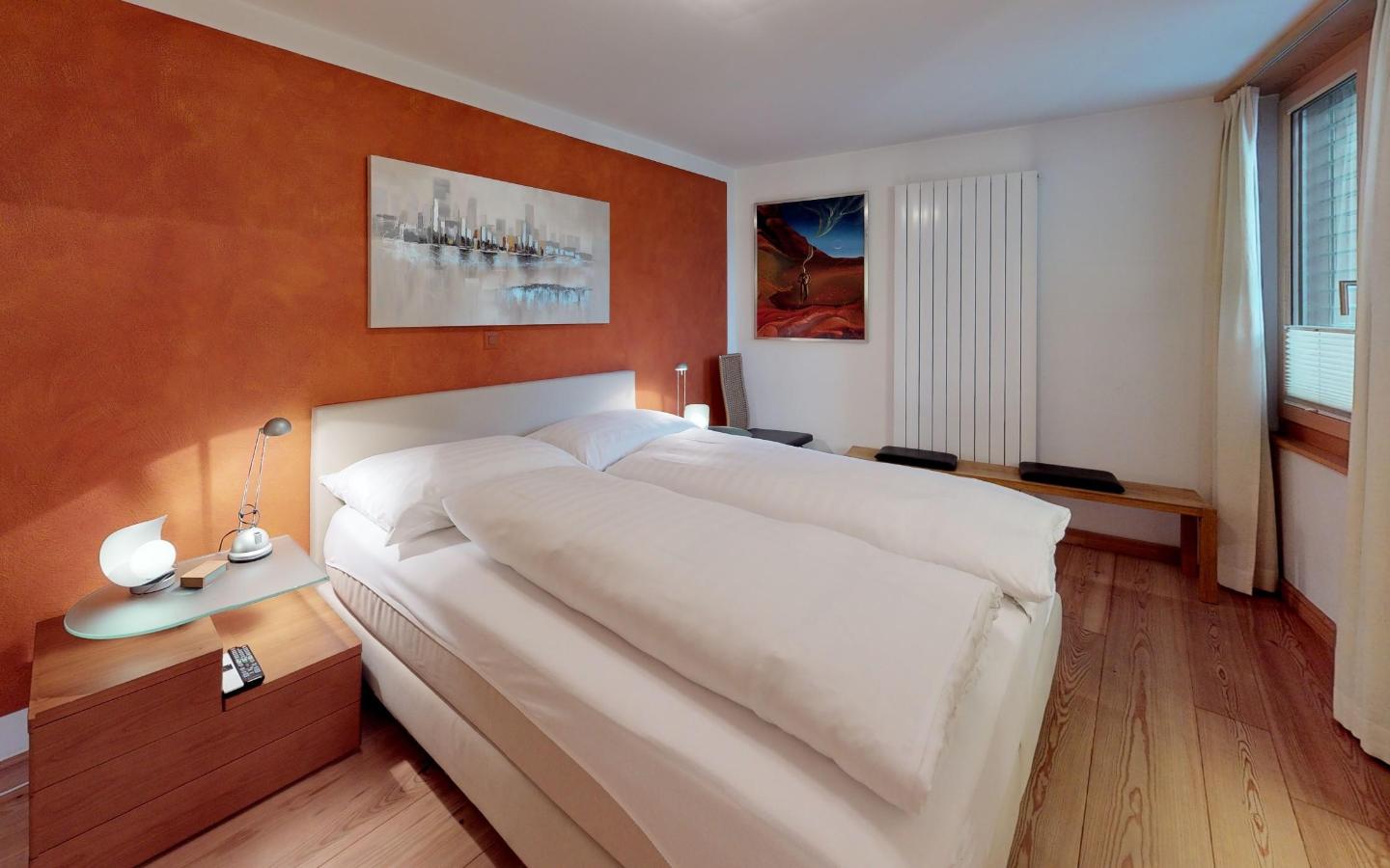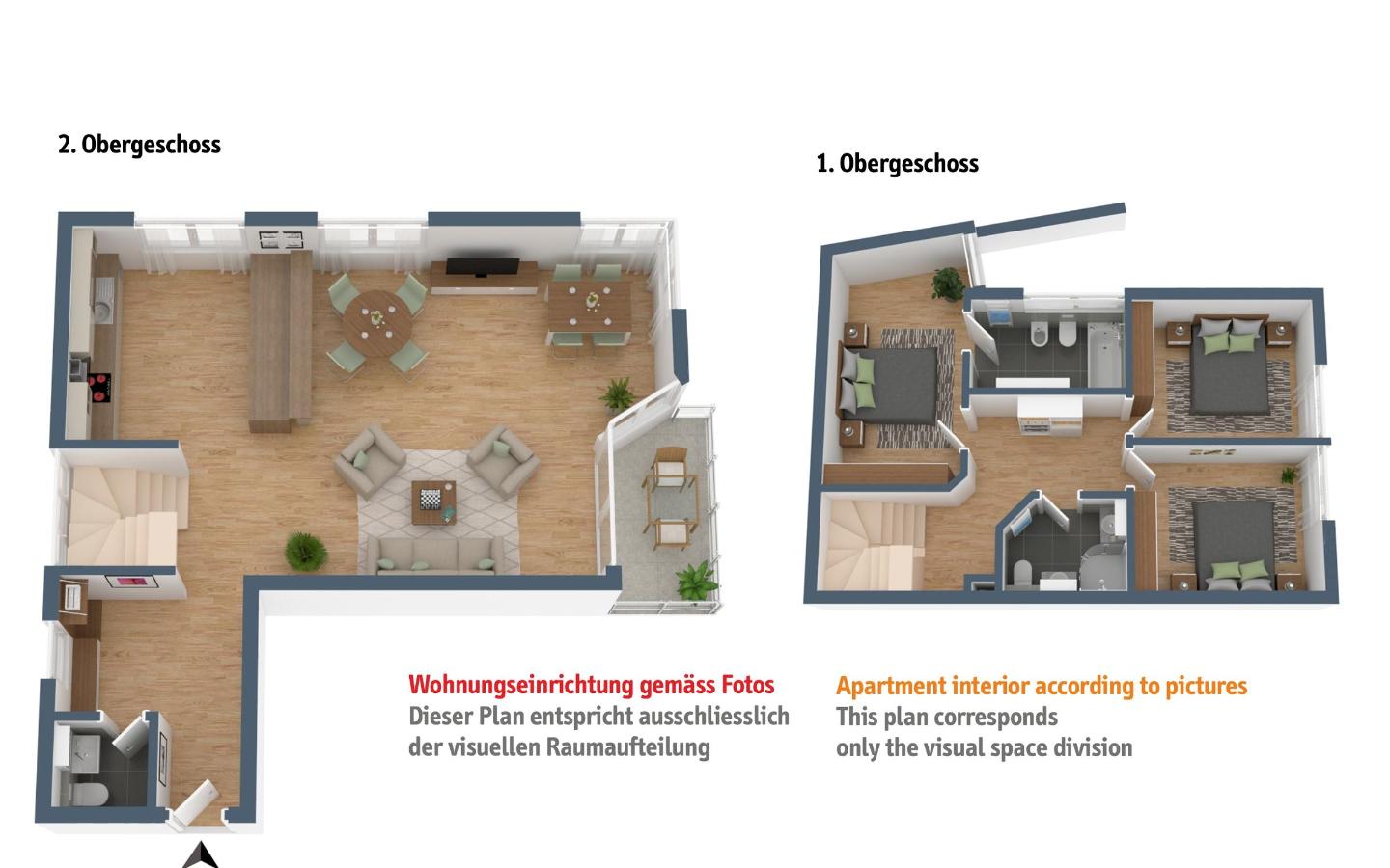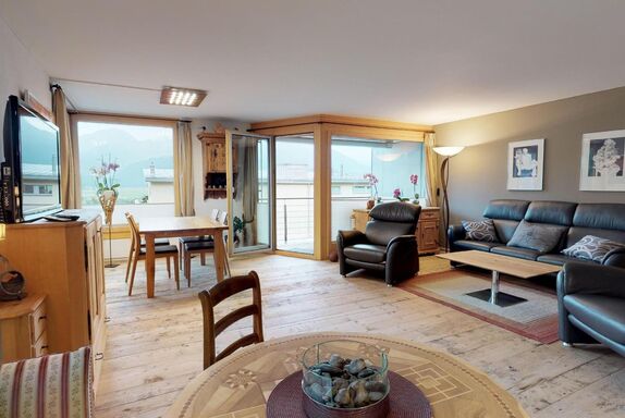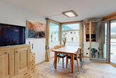 Luxuriöse, gepflegte 4.5 - Zimmer Ferienwohnung auf zwei Ebenen mit original Fexerplatten-Boden und Holzdielen ausgestattet. Eingangsbereich mit Garderobe sowie separatem Gäste WC. Grosszügiger, gemütlicher Wohn-/Essbereich mit Kamin, Balkon und TV. Offene, sehr hochwertig ausgestattete Küche mit original La Cornue-Kochherd aus Frankreich, Geschirrspüler, Backofen, Steamer und Nespresso Kaffeemaschine. Untere Ebene: Schlafzimmer mit Boxspringbett und direktem Zugang zum Badezimmer mit Badewanne/WC, Doppellavabo. Zwei weitere Doppelschlafzimmer (einzelne Matratzen) sowie separate Dusche/WC, Lavabo. 2 PP in 2 verschiedenen Tiefgaragen, Ski- und Veloraum sowie Waschküche im Haus vorhanden.