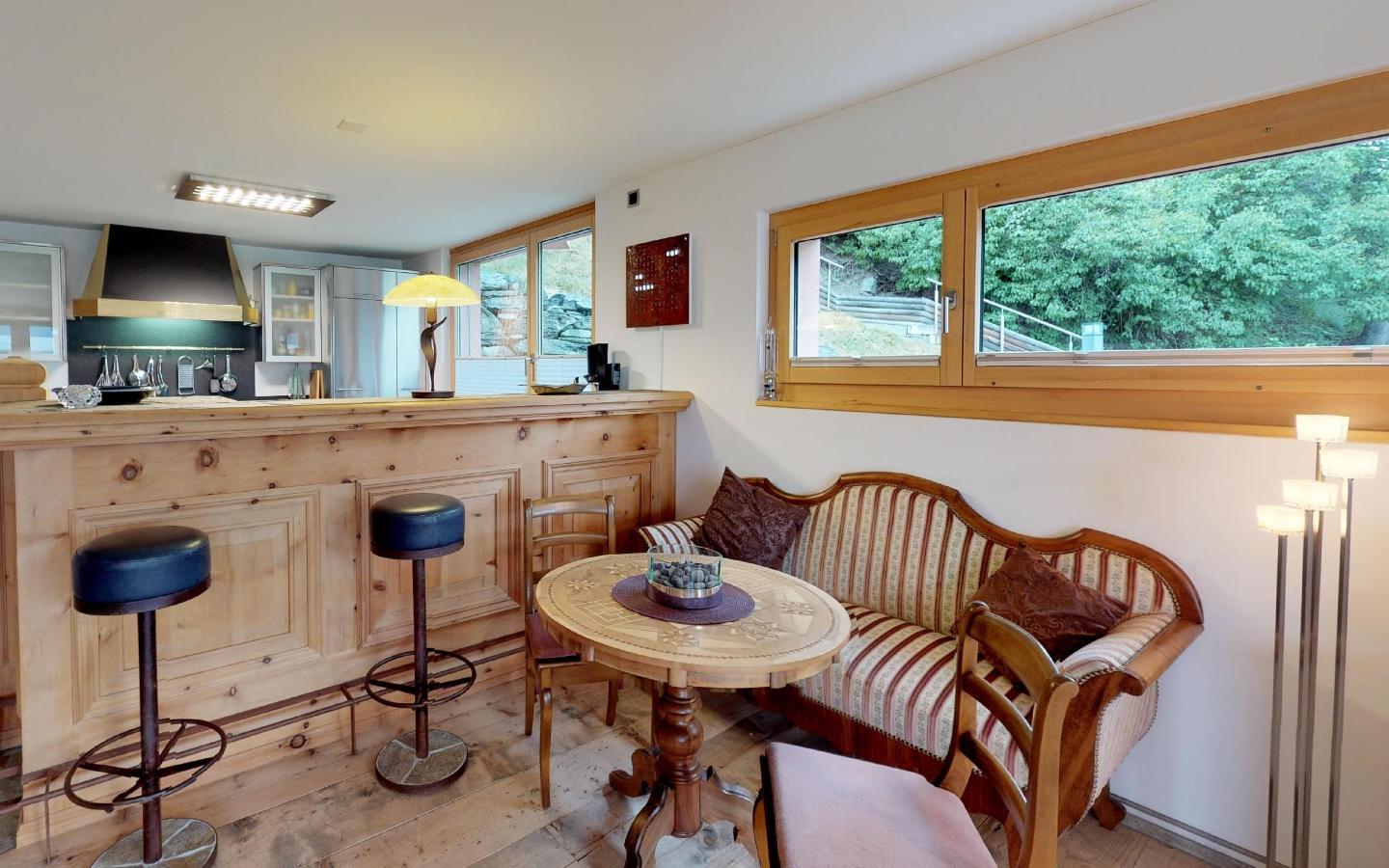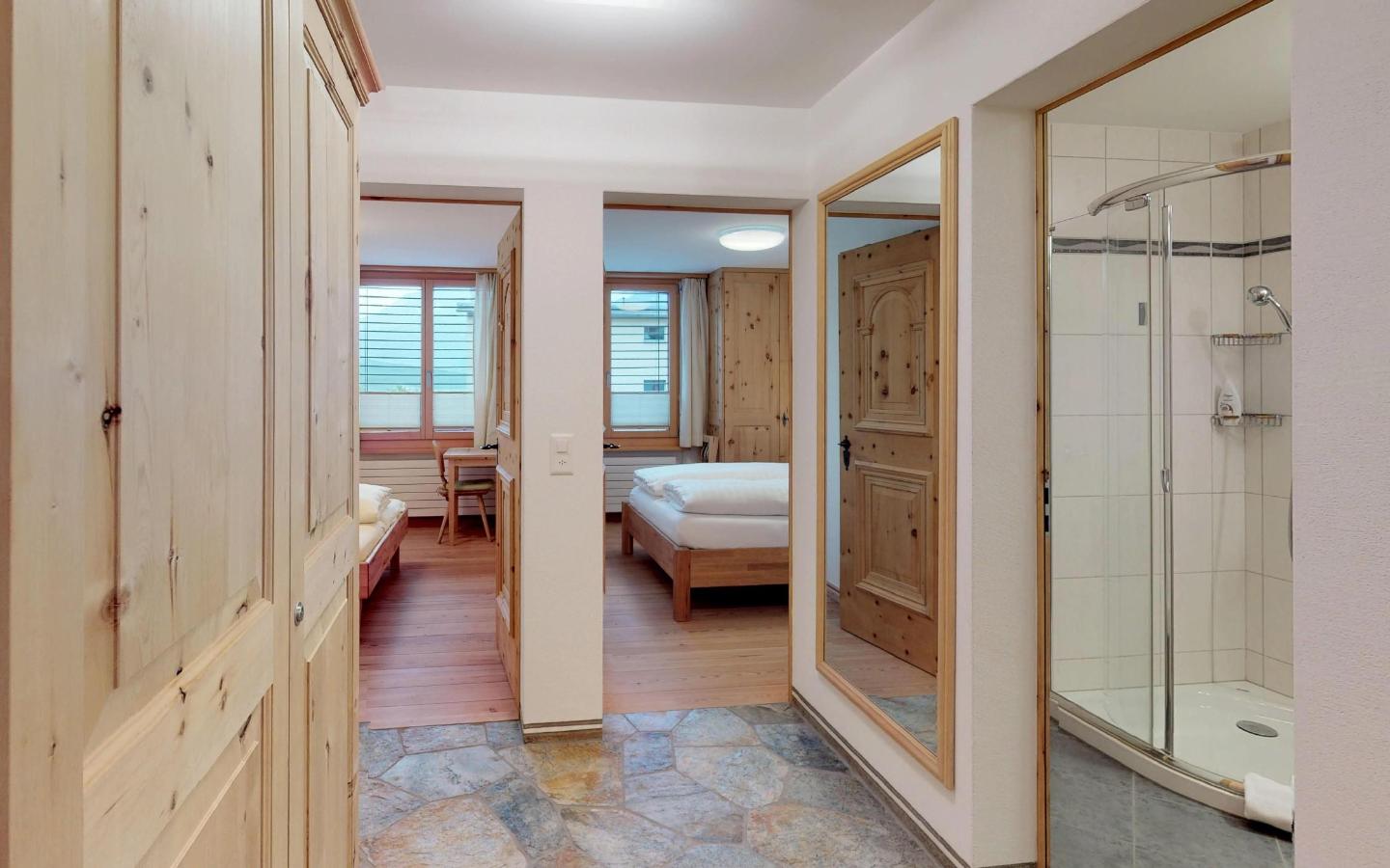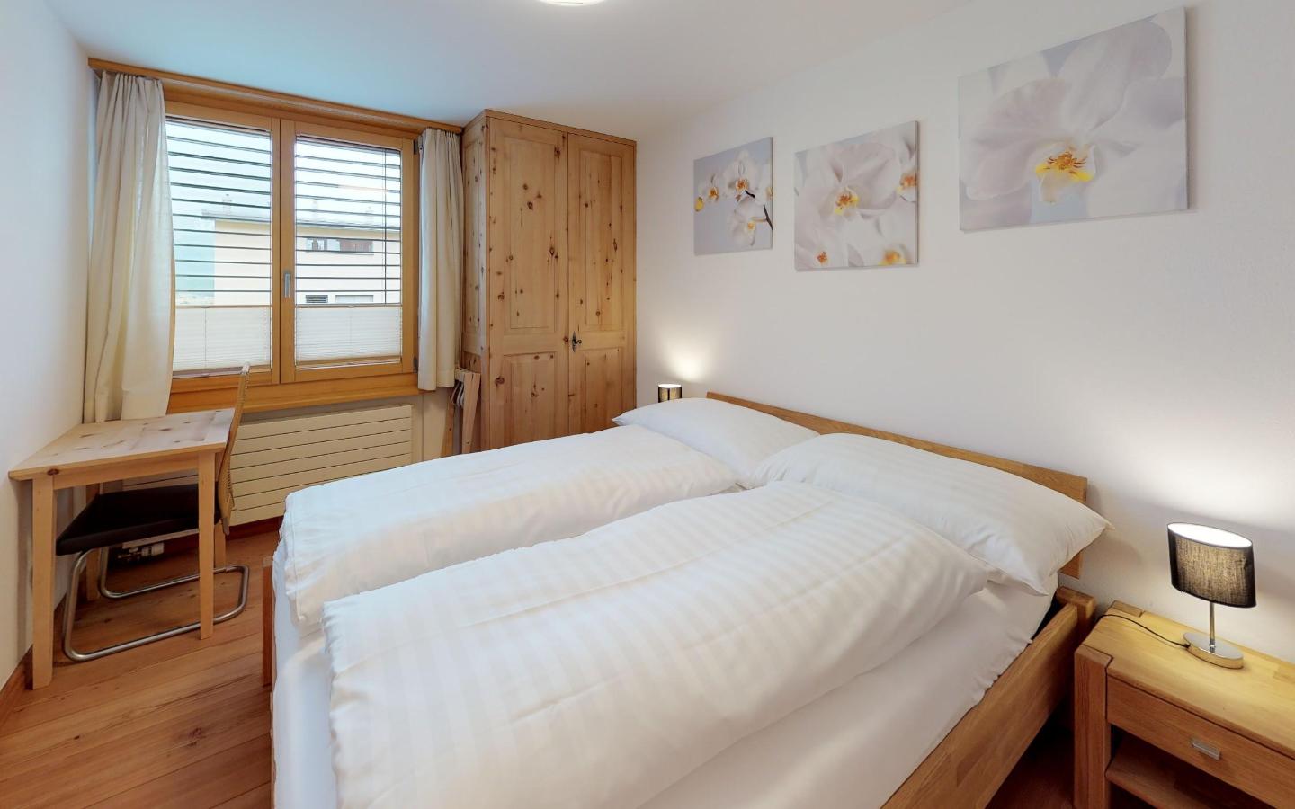 Luxuriöse, gepflegte 4.5 - Zimmer Ferienwohnung auf zwei Ebenen mit original Fexerplatten-Boden und Holzdielen ausgestattet. Eingangsbereich mit Garderobe sowie separatem Gäste WC. Grosszügiger, gemütlicher Wohn-/Essbereich mit Kamin, Balkon und TV. Offene, sehr hochwertig ausgestattete Küche mit original La Cornue-Kochherd aus Frankreich, Geschirrspüler, Backofen, Steamer und Nespresso Kaffeemaschine. Untere Ebene: Schlafzimmer mit Boxspringbett und direktem Zugang zum Badezimmer mit Badewanne/WC, Doppellavabo. Zwei weitere Doppelschlafzimmer (einzelne Matratzen) sowie separate Dusche/WC, Lavabo. 2 PP in 2 verschiedenen Tiefgaragen, Ski- und Veloraum sowie Waschküche im Haus vorhanden.