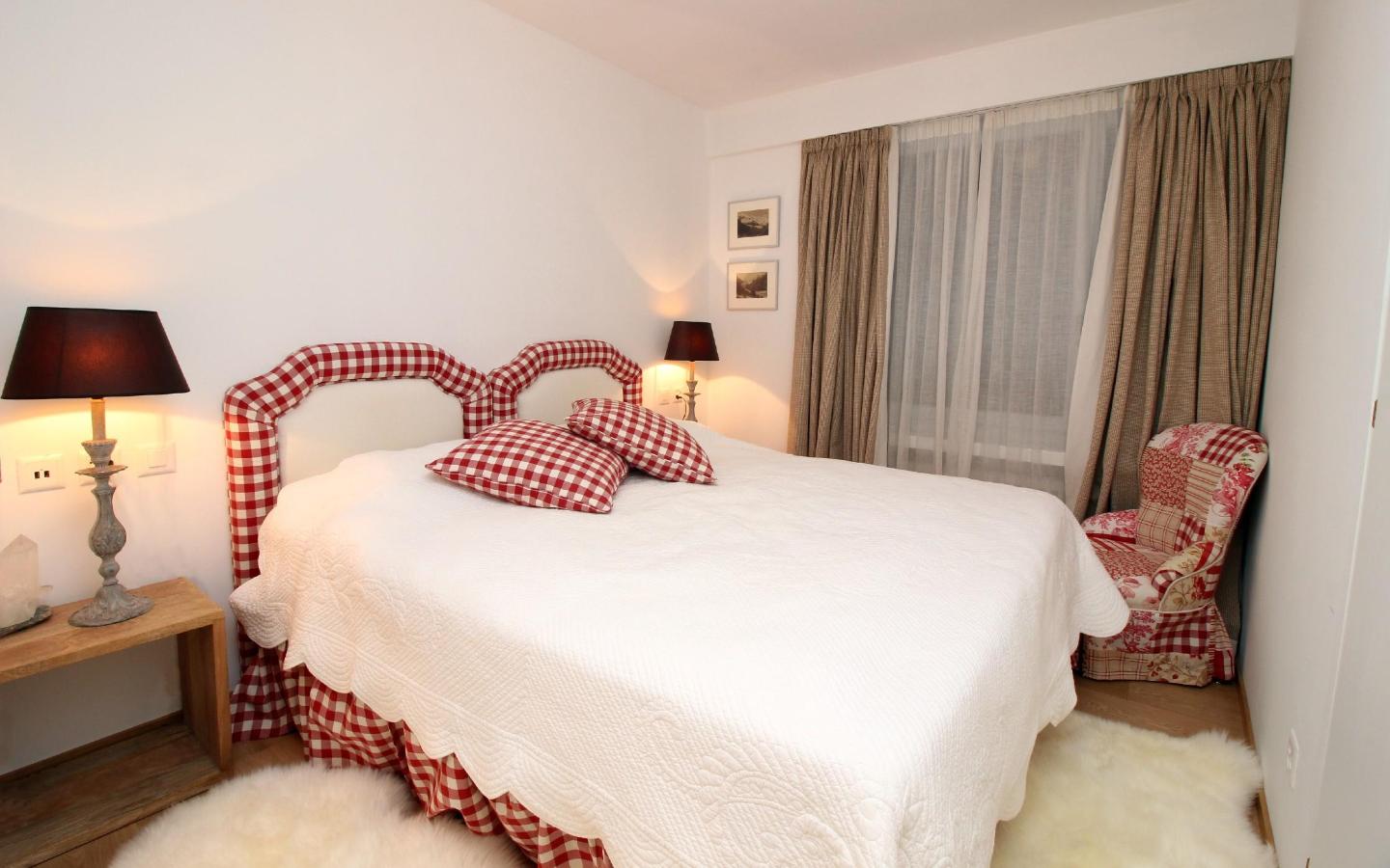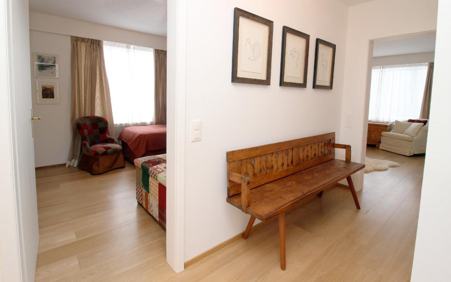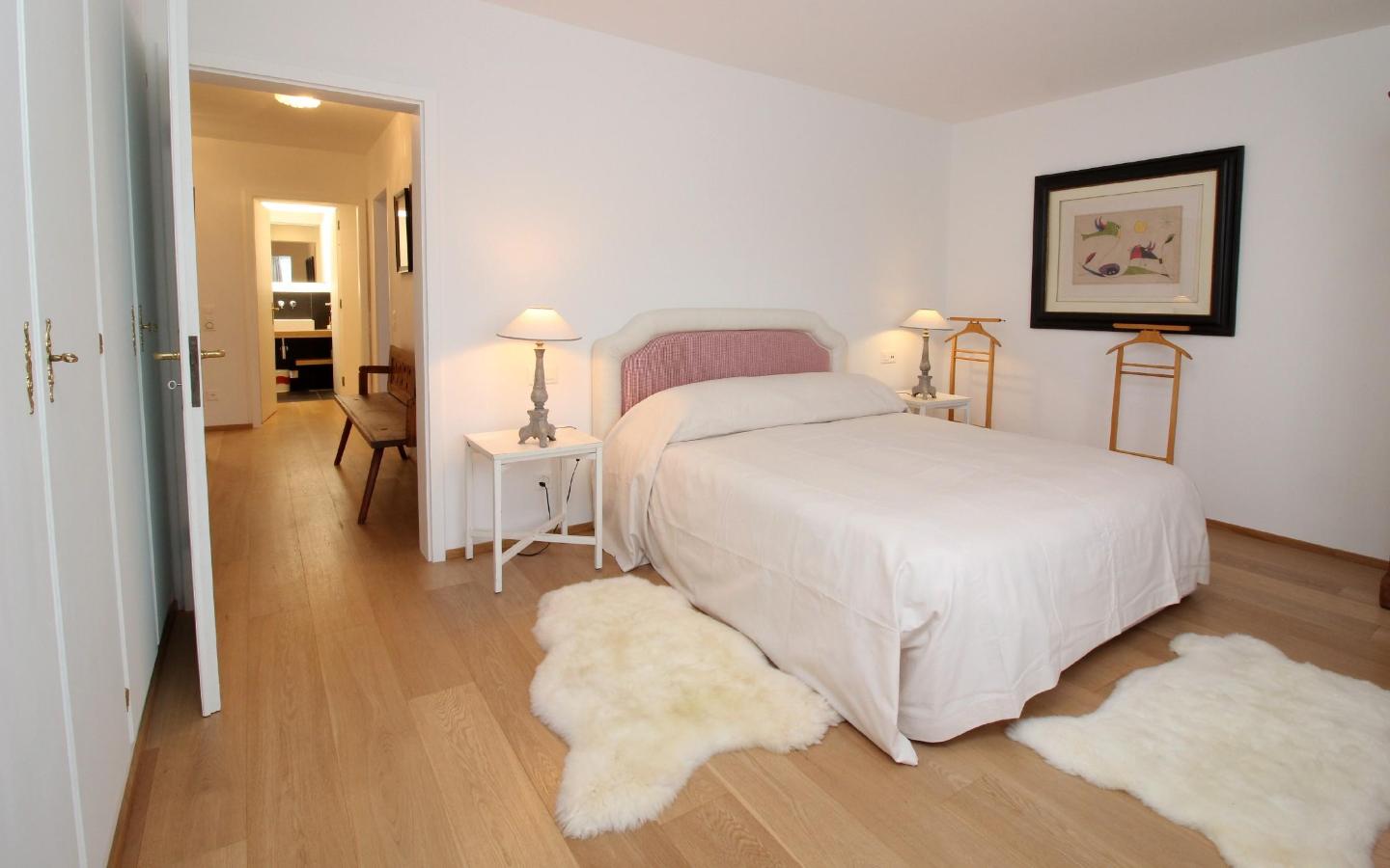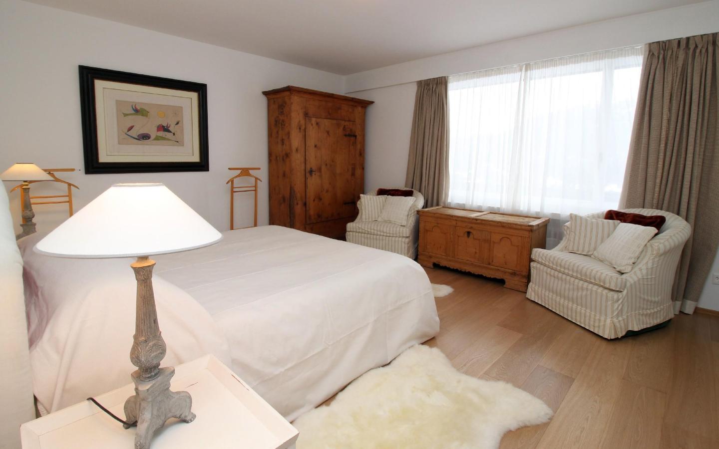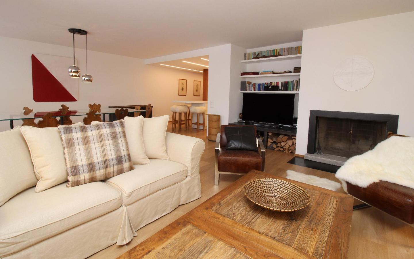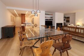Luxuriöse, im alpine style neu renovierte 4.5 Zimmer-Attika-Ferienwohnung. Grosszügiger, lichtdurchfluteter Wohn-/Essbereich mit Kamin und Balkon. Fantastische Panorama-Aussicht auf die markanten St. Moritzer Berge. Gut ausgestattete, moderne Küche. 1 Schlafzimmer mit Doppelbett, eigenem Bad (Dusche/ WC), 1 Schlafzimmer mit Doppelbett, grosszügiges Badezimmer (Badewanne/ Dusche/ WC/ Bidet), 1 Schlafzimmer mit Einzelbett und Etagenbett, weiteres Badezimmer (Dusche/WC). Lift und Garagenplatz sowie eigene Waschmaschine/Tumbler vorhanden.