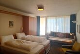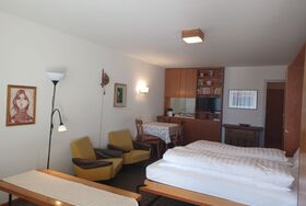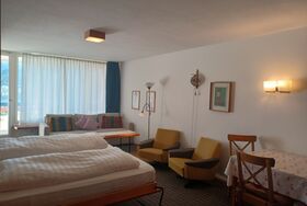 Zweckmässige Ferienwohnung im 6. Stock. Zirka 40 m2. Wohn- /Esszimmer mit Schrankbetten, kleine Küche ohne GS, Balkon mit Aussicht. Bad/Dusche, WC. Lift.