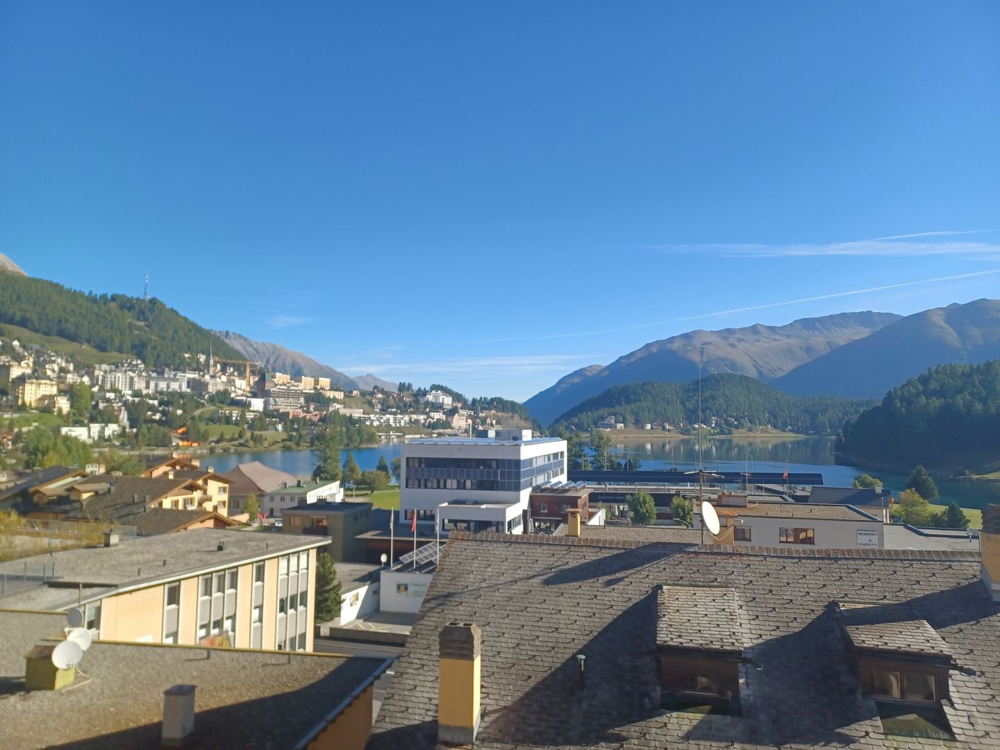 Zentral gelegenes Wohnhaus mit Ferienapartments in St. Moritz - Bad. Unmittelbar an Einkaufsmöglichkeiten und Busverbindung gelegen. Zum St. Moritzer See und zur Leichtathletik-Bahn benötigen Sie nur 5 Gehminuten und die Signal Bahn ins Corviglia Skigebiet erreichen Sie ebenfalls in 10 Gehminuten. Beschränkte Anzahl Aussenparkplätze (für 1 Auto, nicht reserviert) zum Ferienhaus gehörend.