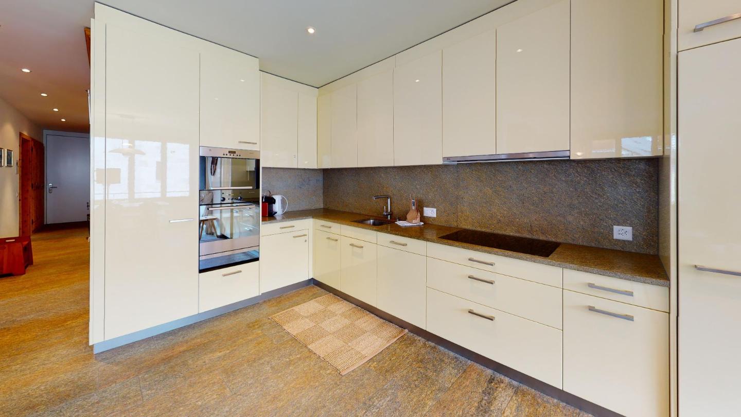Modernes, schönes 3 - Zimmer Ferienapartment im 4. Stock. Zentral und trotzdem ruhig mit toller Aussicht trifft diese Ferienwohnung jeden Geschmack. Wohn- /Esszimmerbereich mit offener Küche. 2 Doppelschlafzimmer. 1 Bad/Du/WC, 1 Du/WC. 1 Garagenplatz.