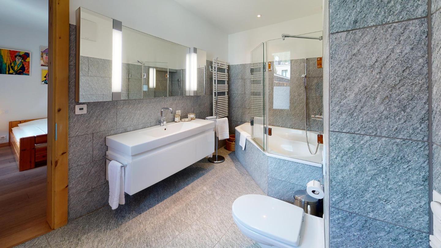 Zentral gelegenes Ferienhaus in St. Moritz - Bad. Unmittelbar an Einkaufsmöglichkeiten und Busverbindung gelegen. Zum St. Moritzer See und zur Leichtathletik-Bahn benötigen Sie nur 5 Gehminuten und die Signal Bahn ins Corviglia Skigebiet erreichen Sie ebenfalls in 10 Gehminuten.