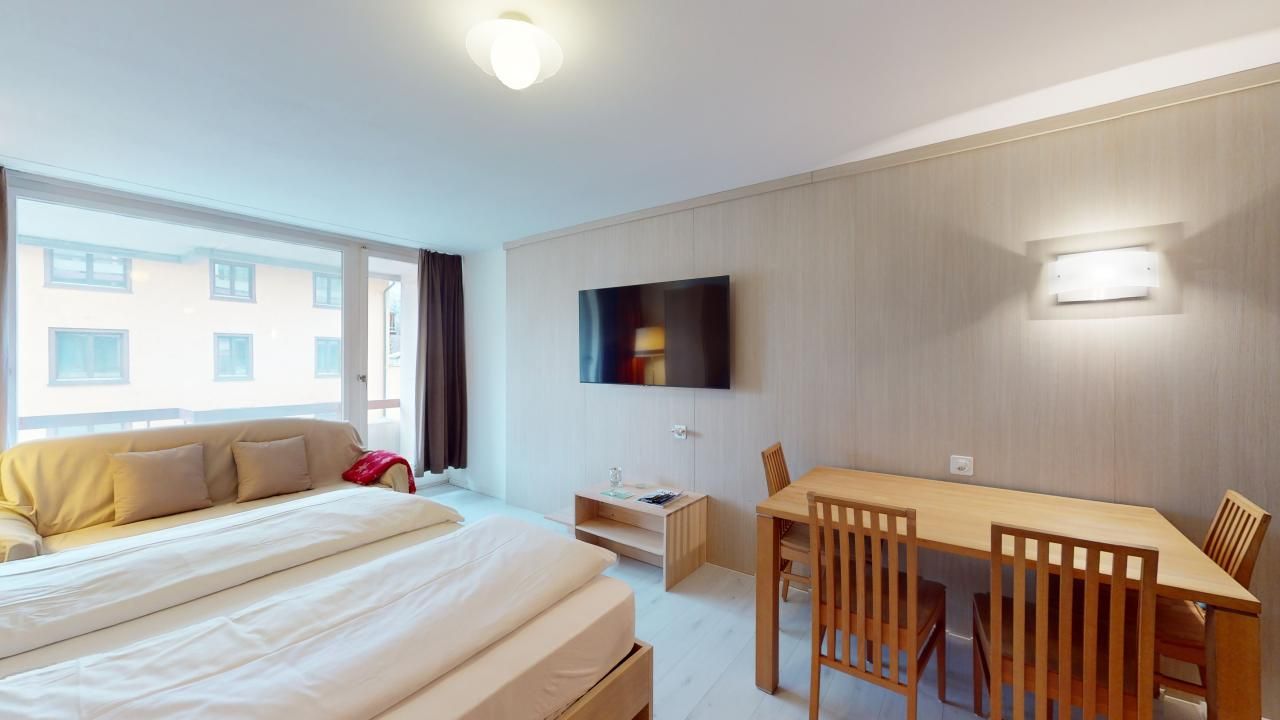 Nette Ferienwohnung im 2. Stock. Zirka 40 m2. Wohn- /Esszimmer mit offener Küche und Doppelbett. Abgetrennte Schlafmöglichkeit mit 2 Kajütenbetten (für Kinder geeignet). Balkon nach Osten. Renoviertes Badezimmer mit Badewanne/Dusche, WC. Gemeinschafts-Waschküche. Lift.