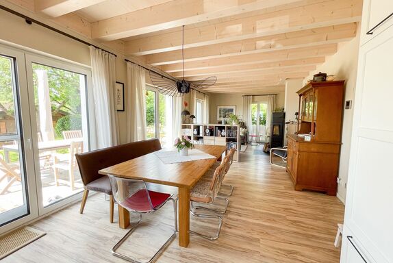 Das Haus ist hochwertig ausgestattet mit vielem, was einen erholsamen und angenehmen Urlaub ermöglicht. Außerdem ist es nach neuesten ökologischen Standards mit einer Luft-Wärmepumpe versehen, mit der Fußbodenheizung und Warmwasserspeicher betrieben werden, Strom wird überwiegend durch eine Photovoltaikanlage erzeugt, bzw. mit 100% Ökostrom bezogen.