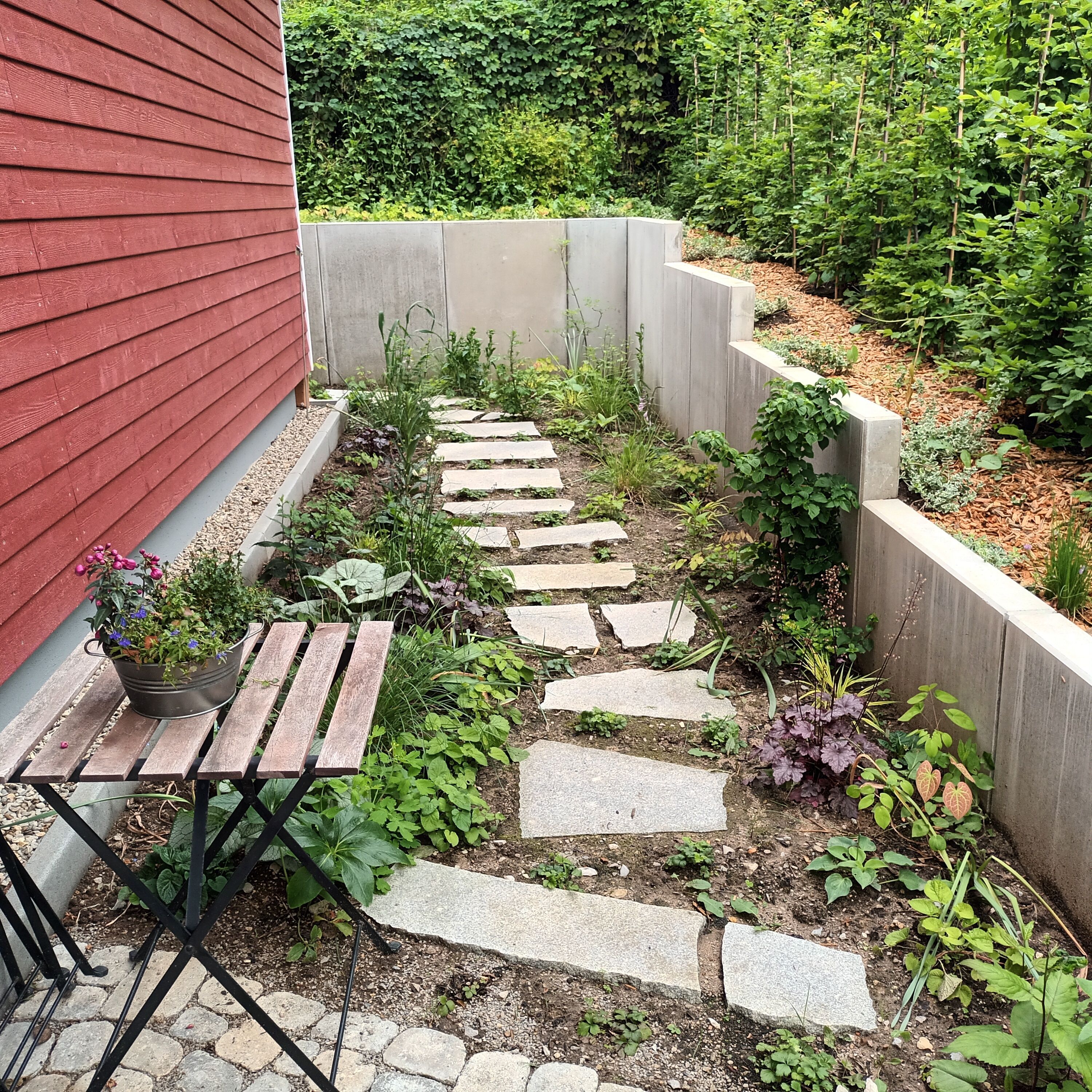 Der Garten wurde neu angelegt, mit altem Obstbaumbestand, bietet genügend Platz zum Spielen und Ausruhen, Vögel beobachten und einfach nur Schauen. Die Beerensträucher, Himbeeren, Erdbeeren, Johannisbeeren sind zum Naschen da, ebenso die Früchte der Obstbäume wie Kirschen, Birnen, Äpfel, Mirabellen, Zwetschgen. Für Kinder gibt es in 150 m Entfernung einen neuen Spielplatz.