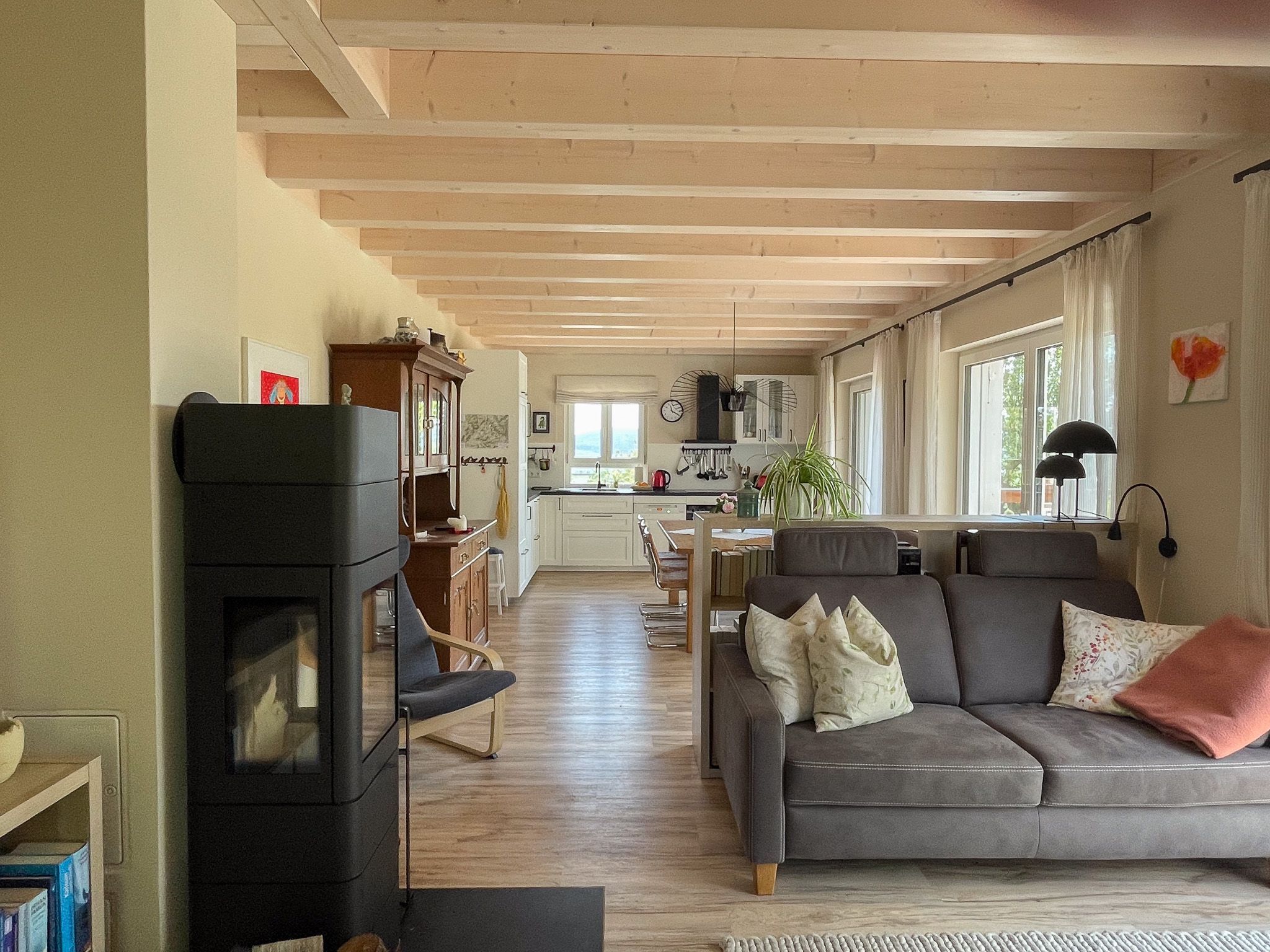 Ausstattung Allgemein: Fußbodenheizung, Kaminofen, OLED-Sat-Smart-TV, WLAN, Kinderhochstuhl, Kinderbett, Stereoanlage, Garten-Grill, Insektenschutzgitter, Verdunkelungsjalousien, Reiseführer und Wanderkarten, Bibliothek mit vielen Büchern,