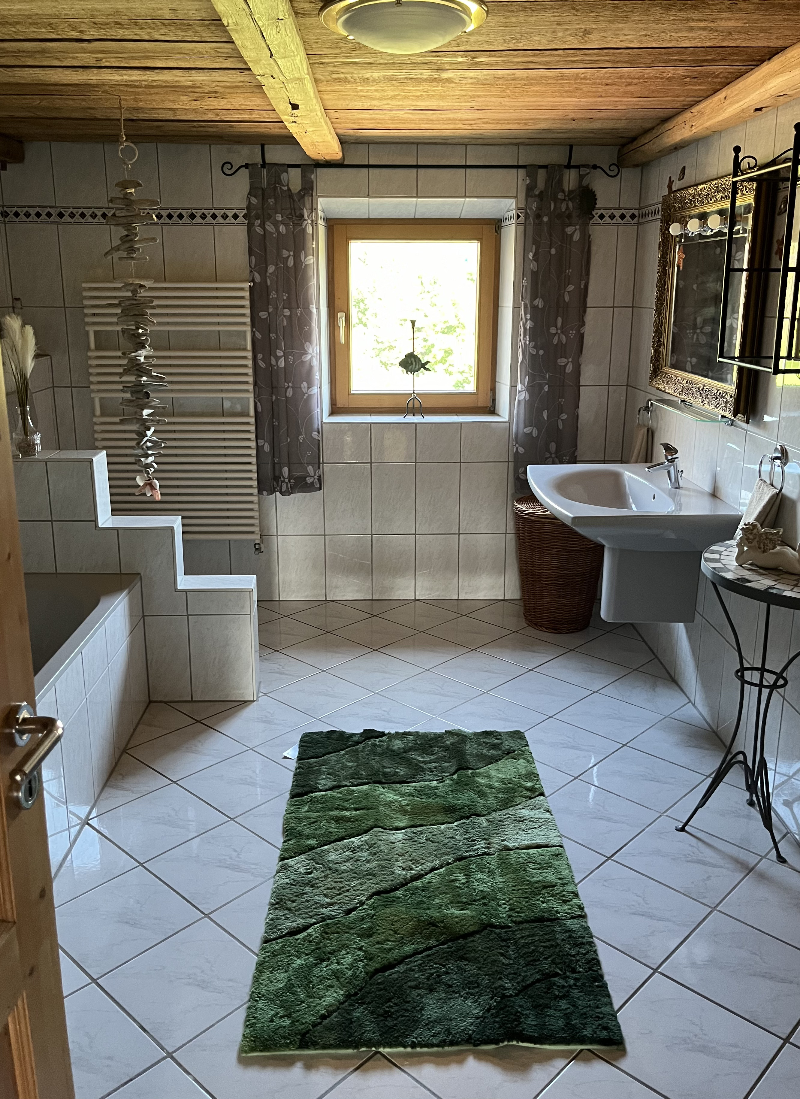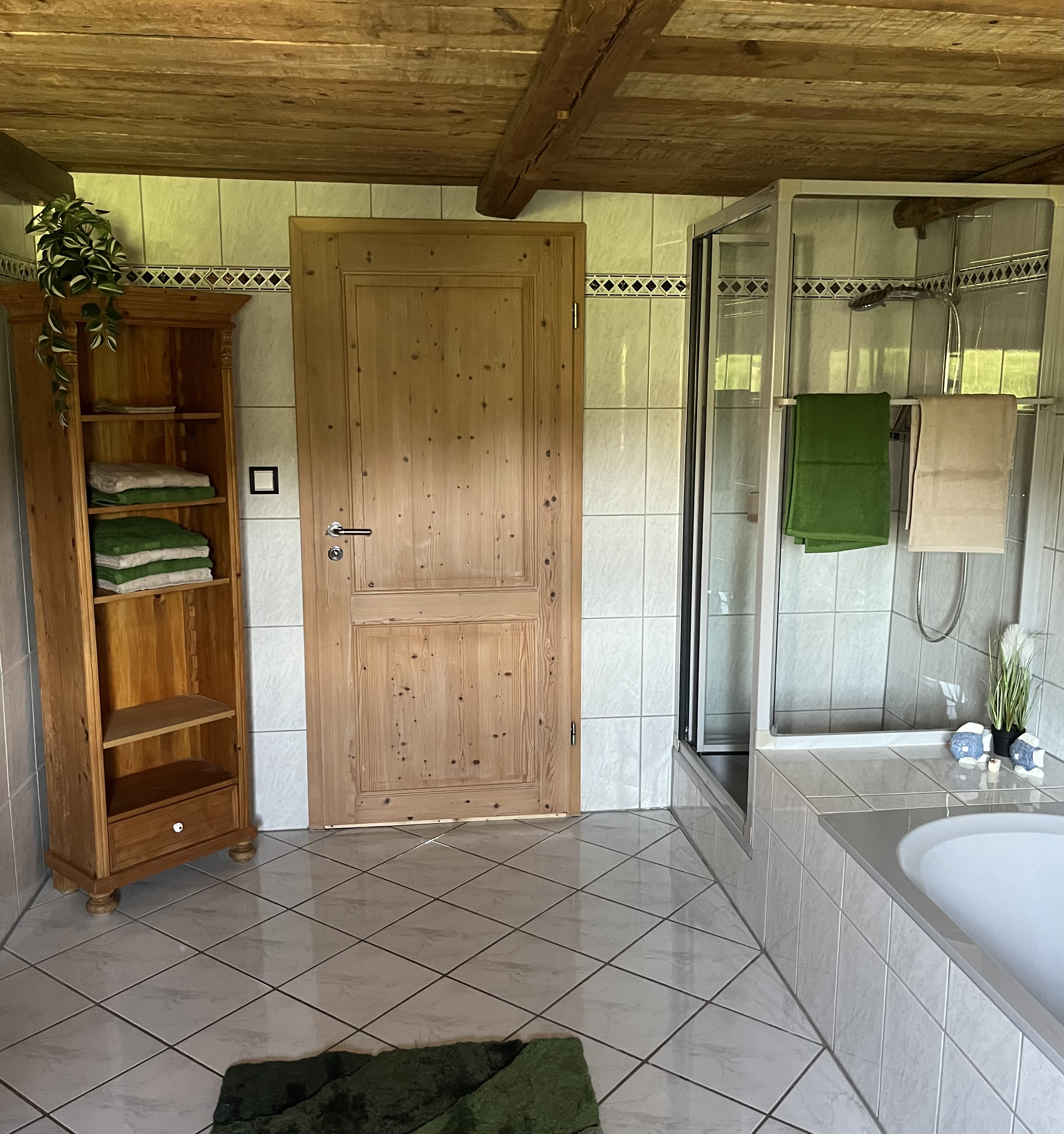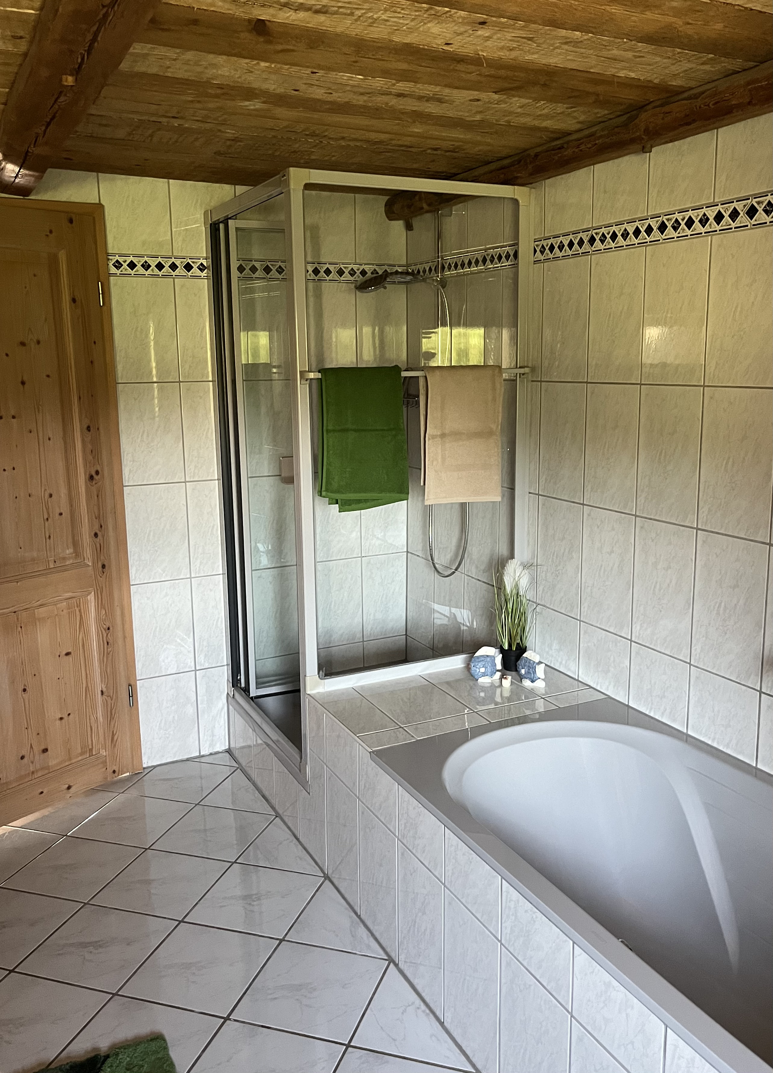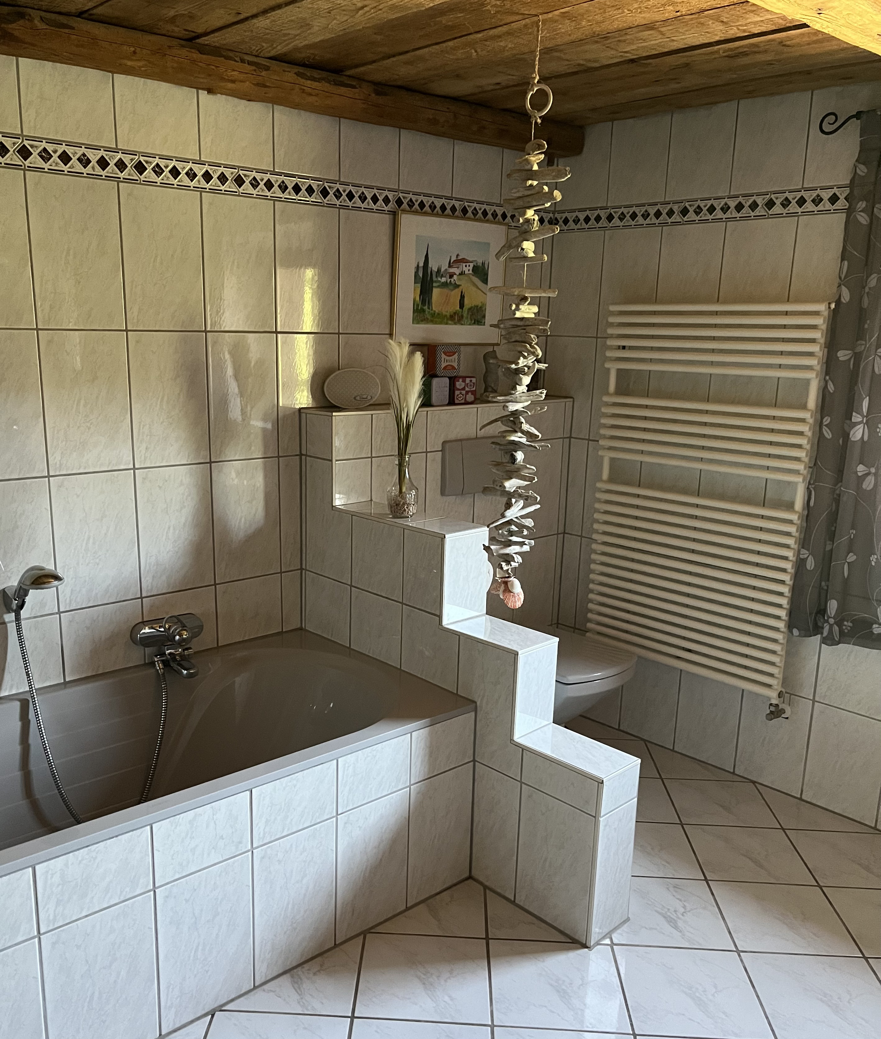 Im Badezimmer verfügen Sie über ein WC, ein Waschbecken, einer Dusche und einer Badewanne.