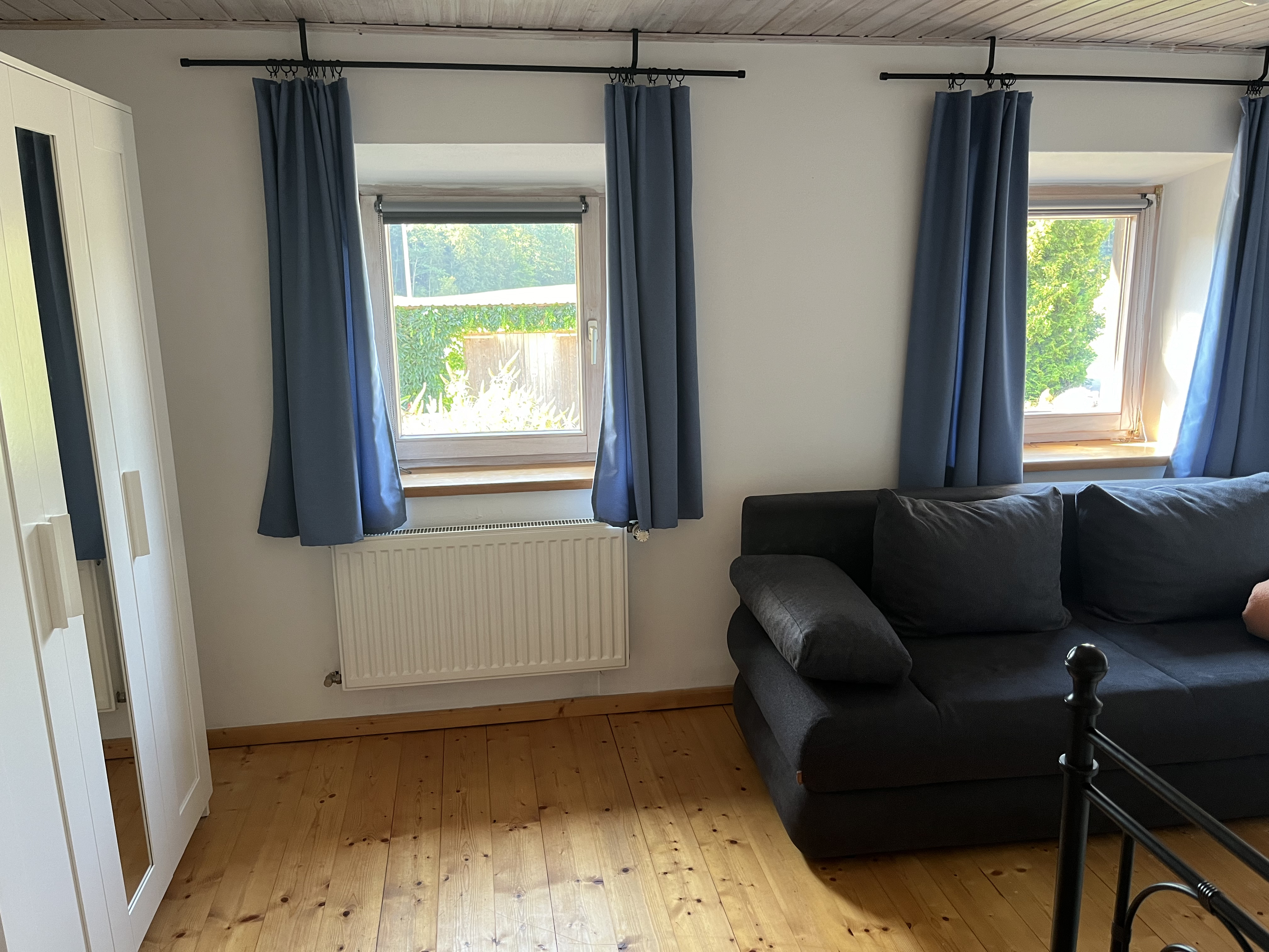Es gibt ein großes Schlafzimmer mit einem Doppelbett (180x200cm), ein Kinderzimmer mit französischem Bett (140x200cm) und einer Schlafcouch. In jedem Schlafzimmer befinden sich an den Fenstern Verdunkelungsrollos.