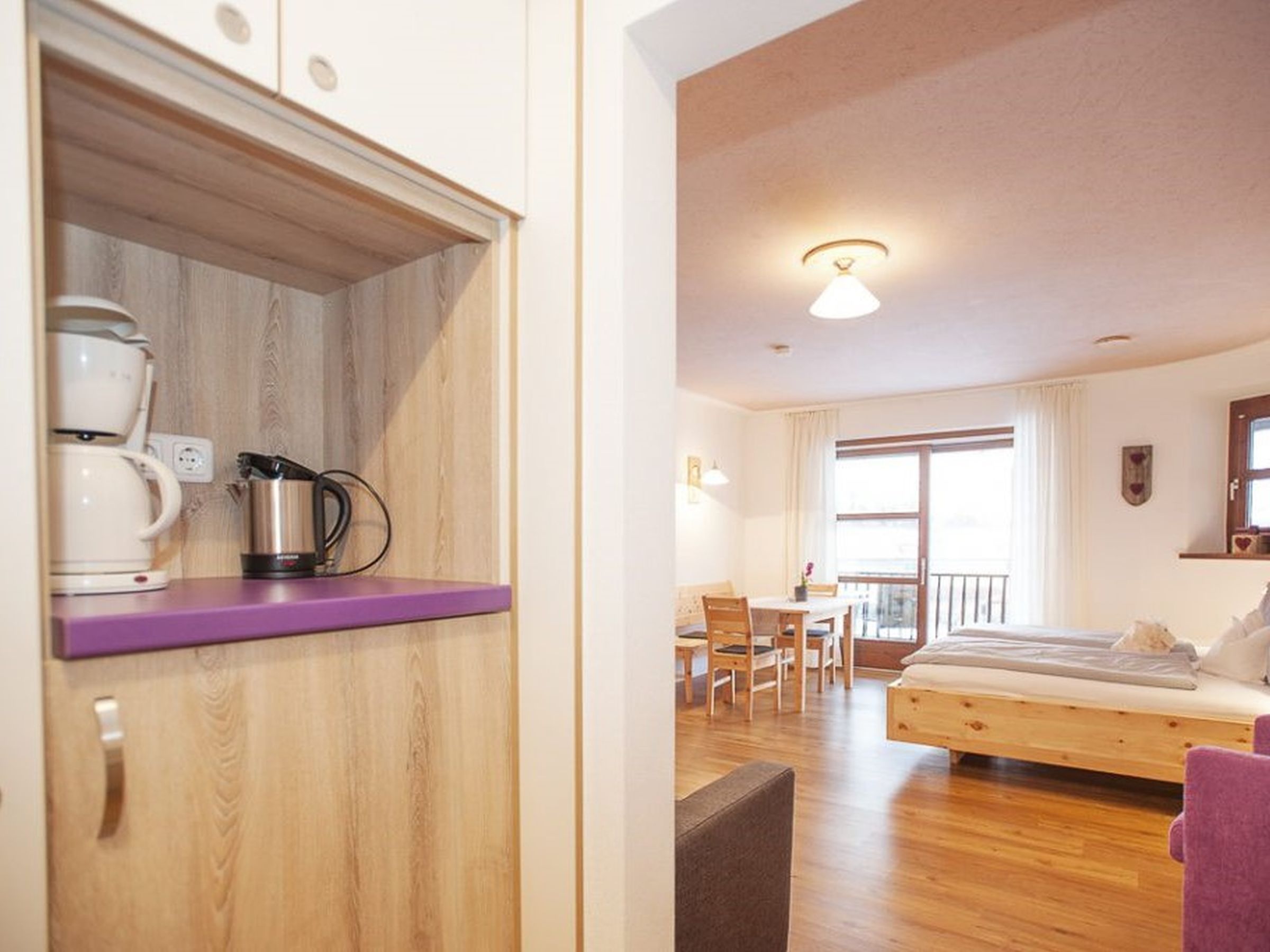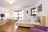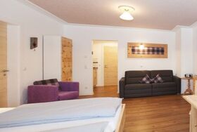 Hier riecht es so wunderbar nach Zirbe für Ihren perfekten Schlaf. Die Zirbenstub´n ist bestens geeignet für zwei Personen. Durch den Komfort der Ausziehcouch mit Topper (200 x 180 cm) wie auf einem Doppelbett ist eine Belegung auch bis zu vier Personen möglich. Komplett ausgestattete Küche, großer Kleiderschrank, Flachbild TV. Telefon zur freien Nutzung. Modernes Bad mit Dusche/WC. Balkon mit Tisch und Stühle und Blick in den großes Garten.