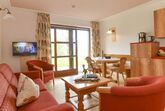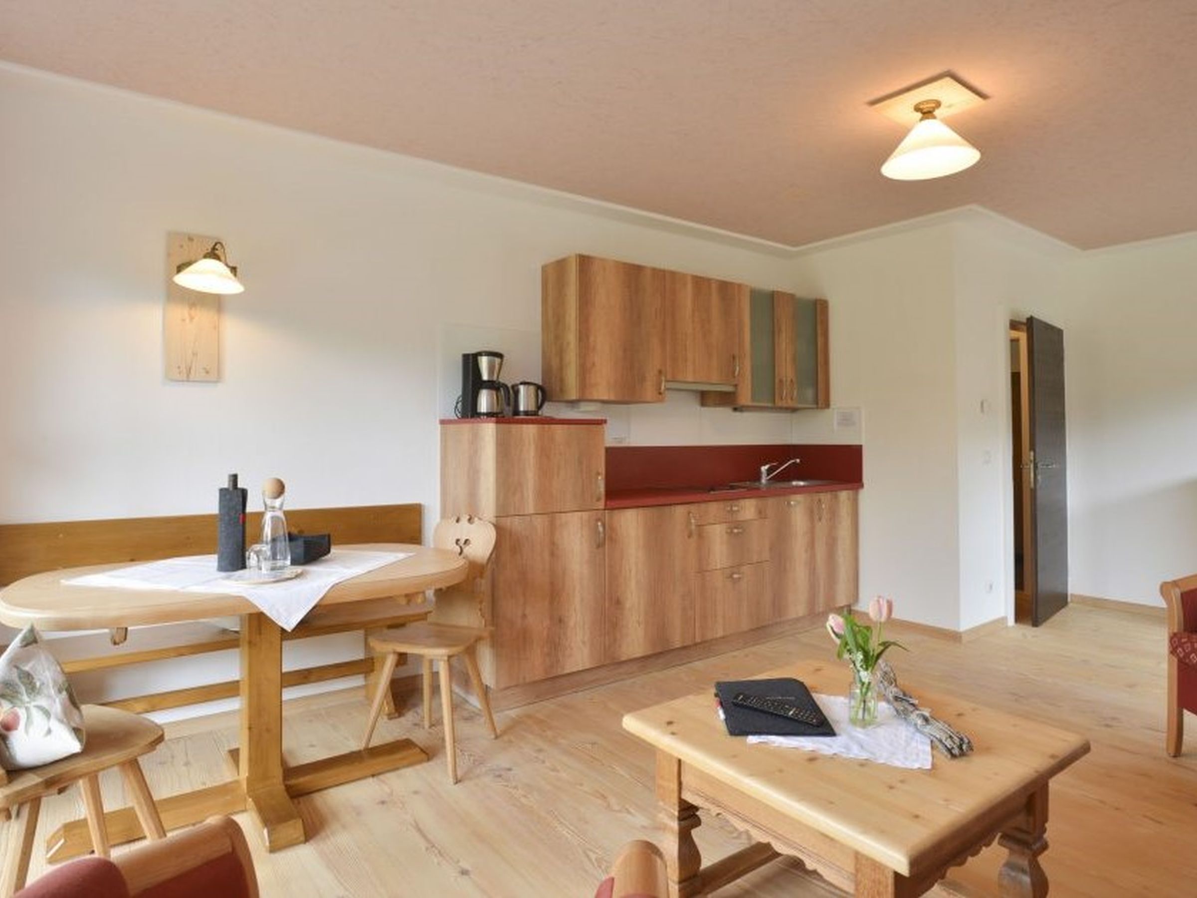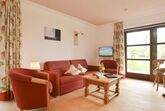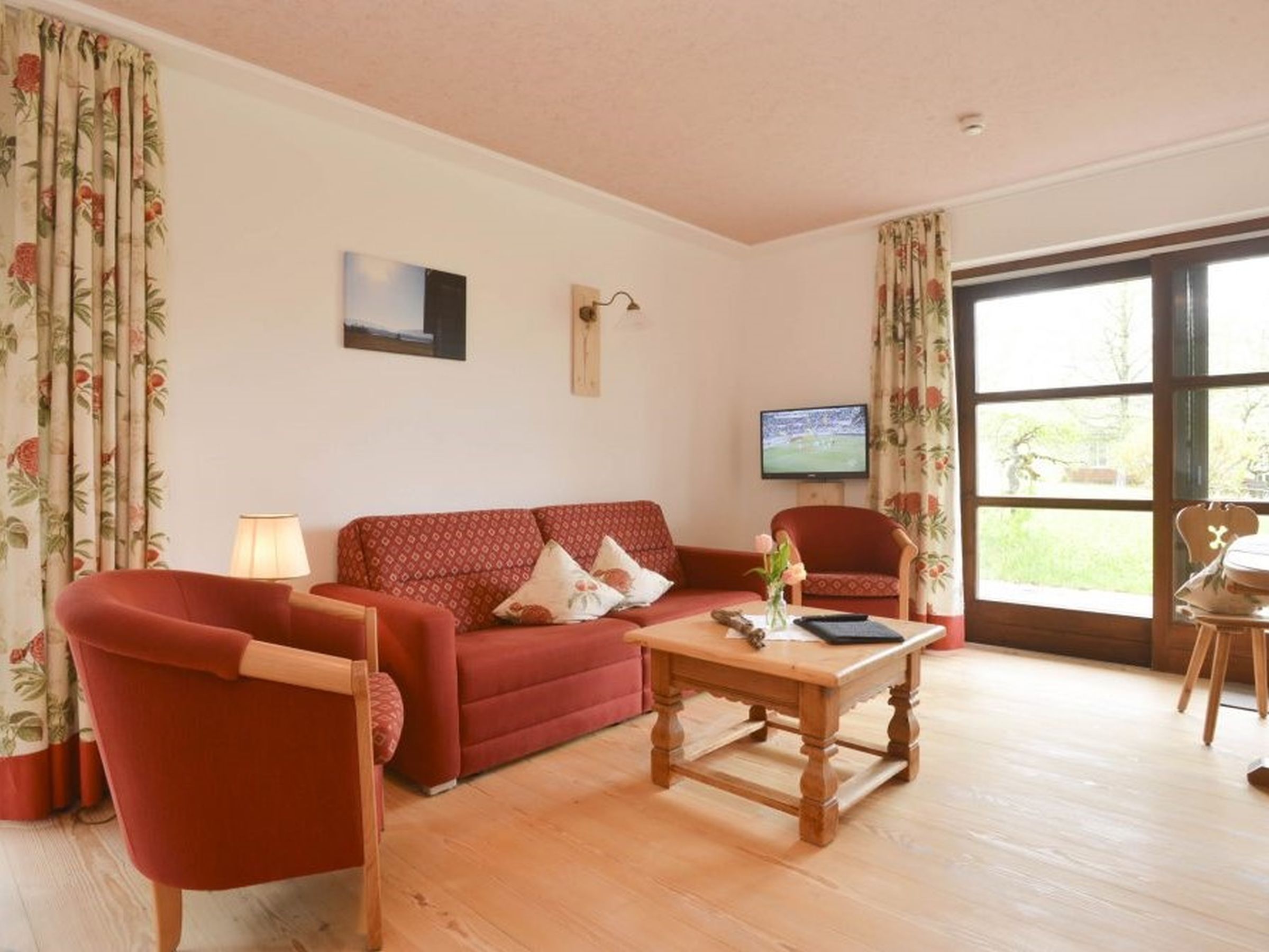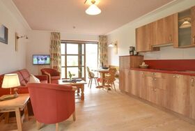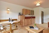 Unser Zwei-Zimmer-Apartment im EG mit großer Terrasse, ausreichenden Sitzgelegenheiten innen und außen, großem Tisch, Sonnenschirm und Liege und direktem Zugang in unseren großen Garten. Fichten-Naturholzboden, geölt, im Flur und Wohnraum. In diesem Apartment sind Wohn- und Schlafraum getrennt. Insektenschutztüren zur ausreichenden Durchlüftung verbaut. Rollos zur Verdunkelung. Ausgestattet mit einer modernen, kompletten Küchenzeile, Flachbild-TV und weiteren komfortablen Schlafgelegenheiten auf der Ausziehcouch mit Topper (200 x 180 cm) können Sie sich hier so richtig wohl fühlen. Großzügiges modernes Badzimmer, Dusche mit komfortablem Einstieg und Sitzgelegenheit.