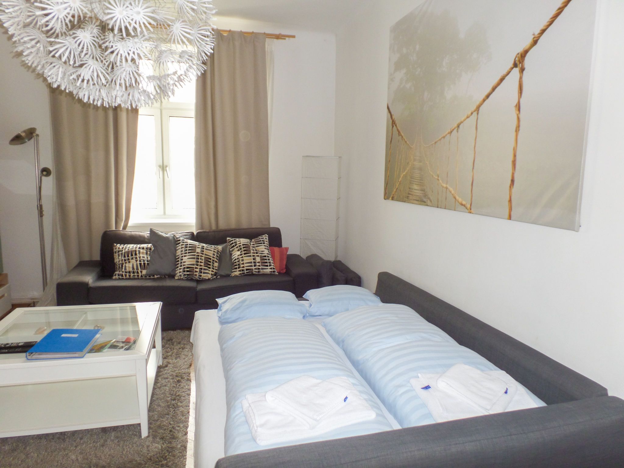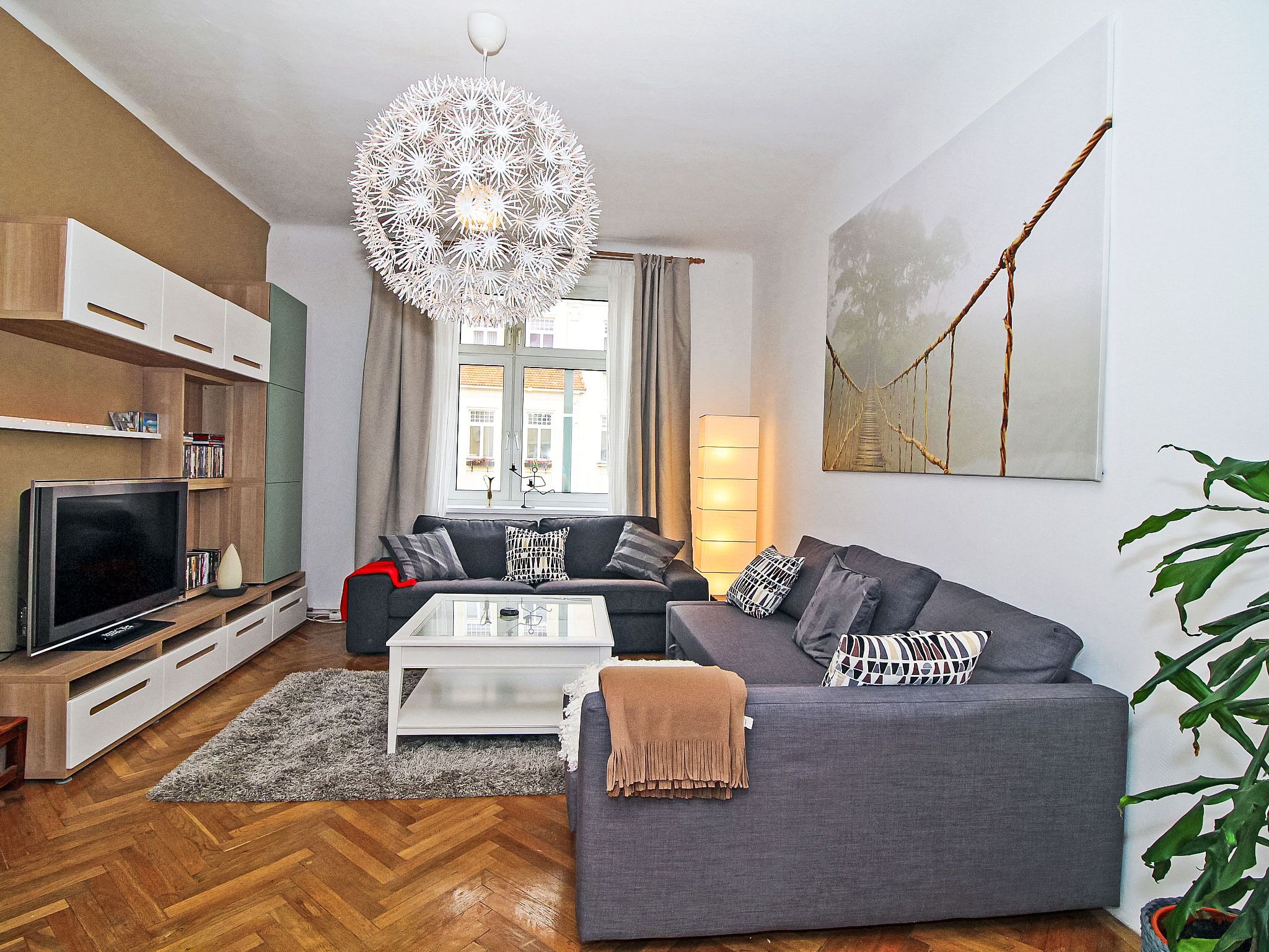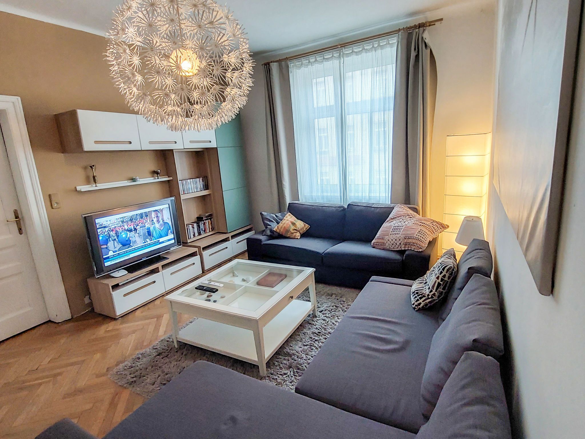 3-Zimmer-Wohnung 78 m2 im 3. Stock. Geräumig und hell, renoviert im Jahre 2017, komfortabel und gemütlich eingerichtet: offener grosser Eingang. Wohnzimmer mit 1 Doppeldiwanbett, Kabel-TV, Internationale TV-Sender, Flachbildschirm, Video, DVD, DVD Sammlung vorhanden und Ventilator. 1 kleines Doppelzimmer. 1 grosses Doppelzimmer mit Flachbildschirm und Ventilator. Grosse, offene Küche (Backofen, 4 Glaskeramikplatten, Tiefkühler, elektrische Kaffeemaschine) mit Esstisch. Bad/WC. Parkettboden. Seitliche Sicht auf Park. Zur Verfügung: Waschmaschine, Haartrockner. Internet (WLAN, gratis). Bitte beachten: geeignet für Familien. Nichtraucher-Unterkunft.