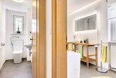 Die offene und vollausgestattete Küche lädt dazu ein, kulinarische Köstlichkeiten zu zaubern und gemeinsame Mahlzeiten zu genießen. Die Wohnung verfügt über ein Tageslicht-Badezimmer mit Dusche und Badewanne, um sich zu erfrischen und zu entspannen. Das separate WC bietet zusätzliche Privatsphäre und Komfort.