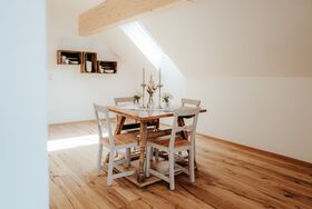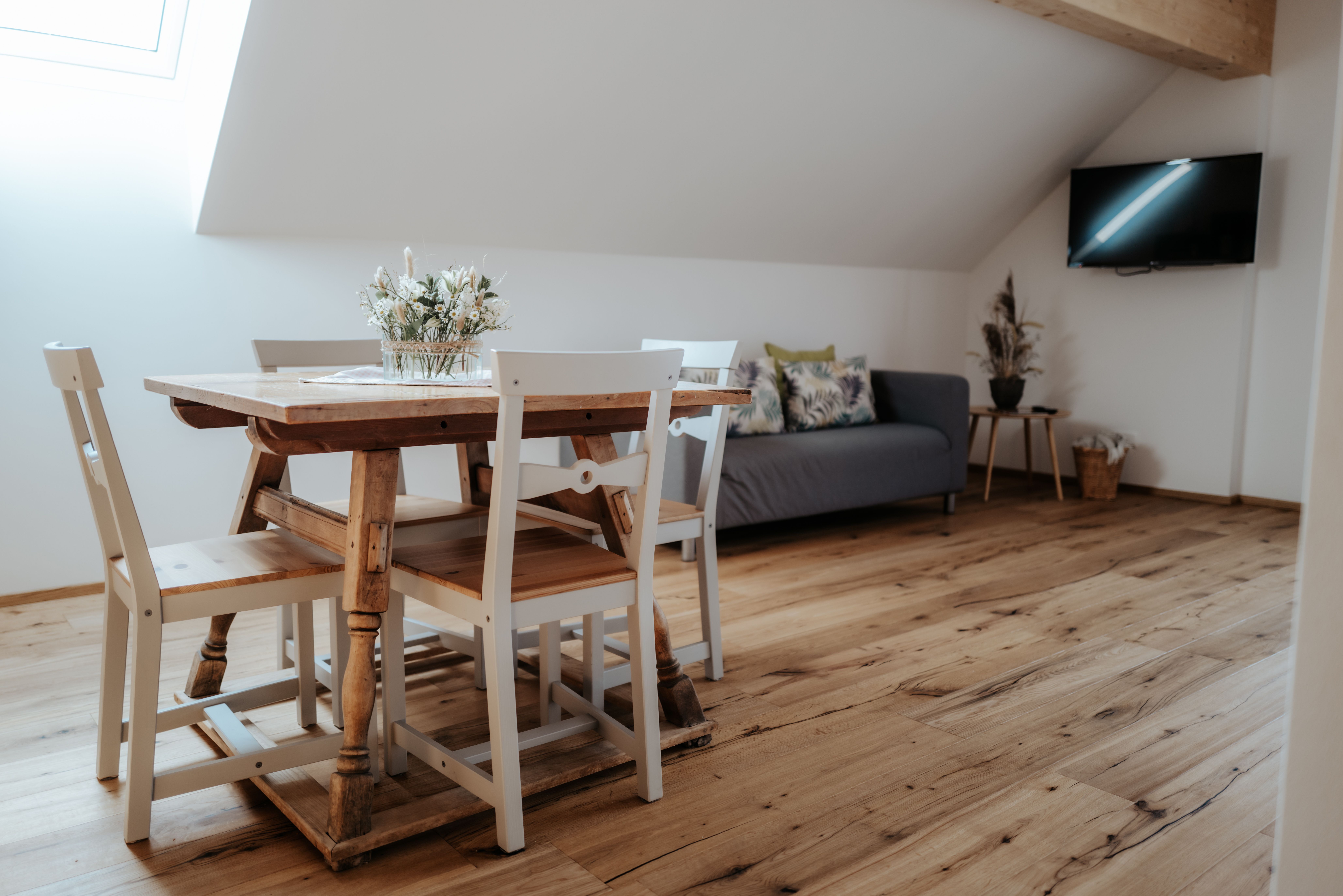 Unser Hof liegt am Fuße des Schafberges, er wurde 1769 erbaut und in den letzten Jahren liebevoll restauriert und um 3 großzügig angelegte Ferienwohnungen erweitert.