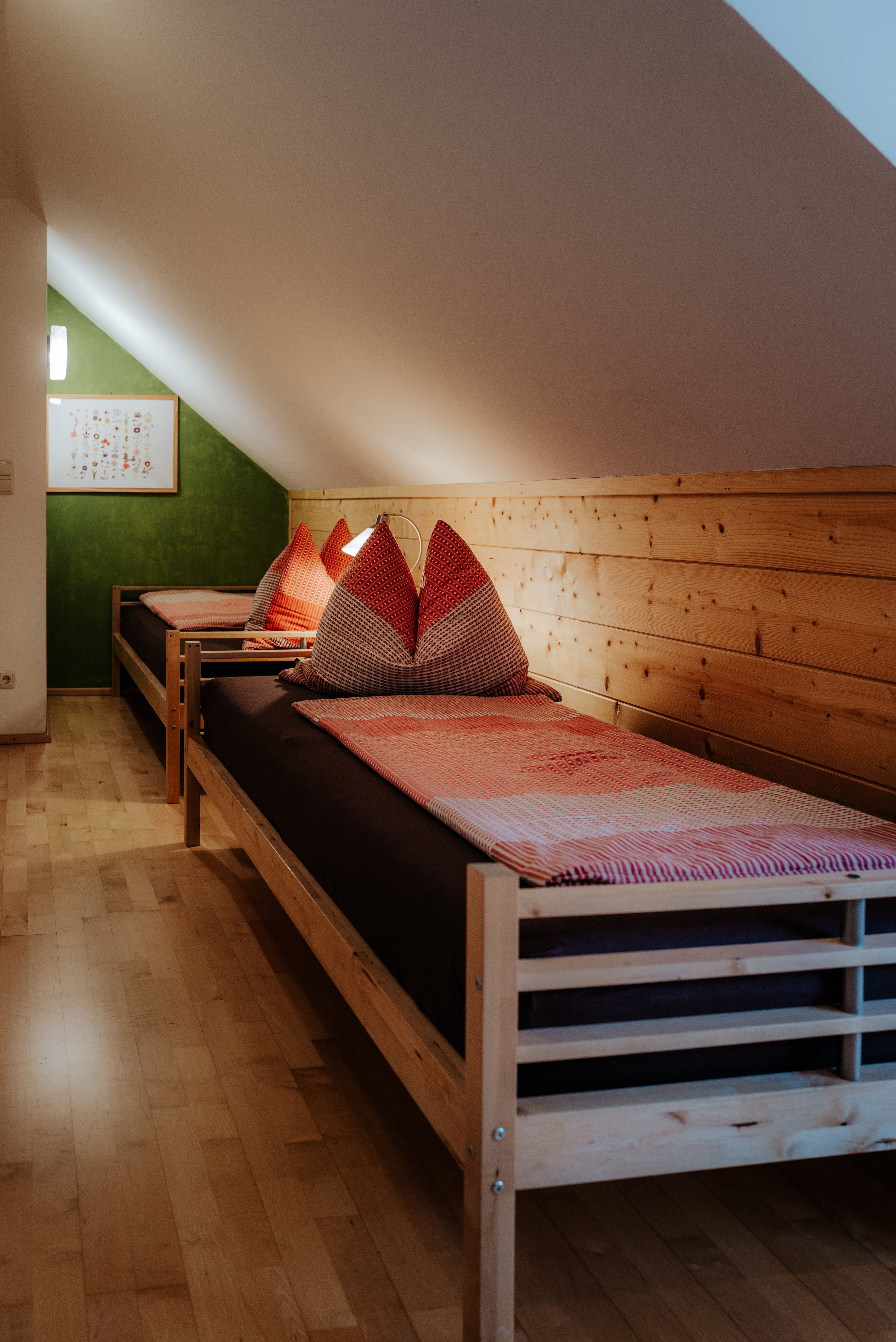 Mit zwei getrennten Schlafzimmern bietet sich die moderne Ferienwohnung wunderbar für Familien oder einen Ausflug mit Freund:innen an. Ein Schlafzimmer verfügt dabei über ein Doppelbett - das andere über 3 Einzelbetten.