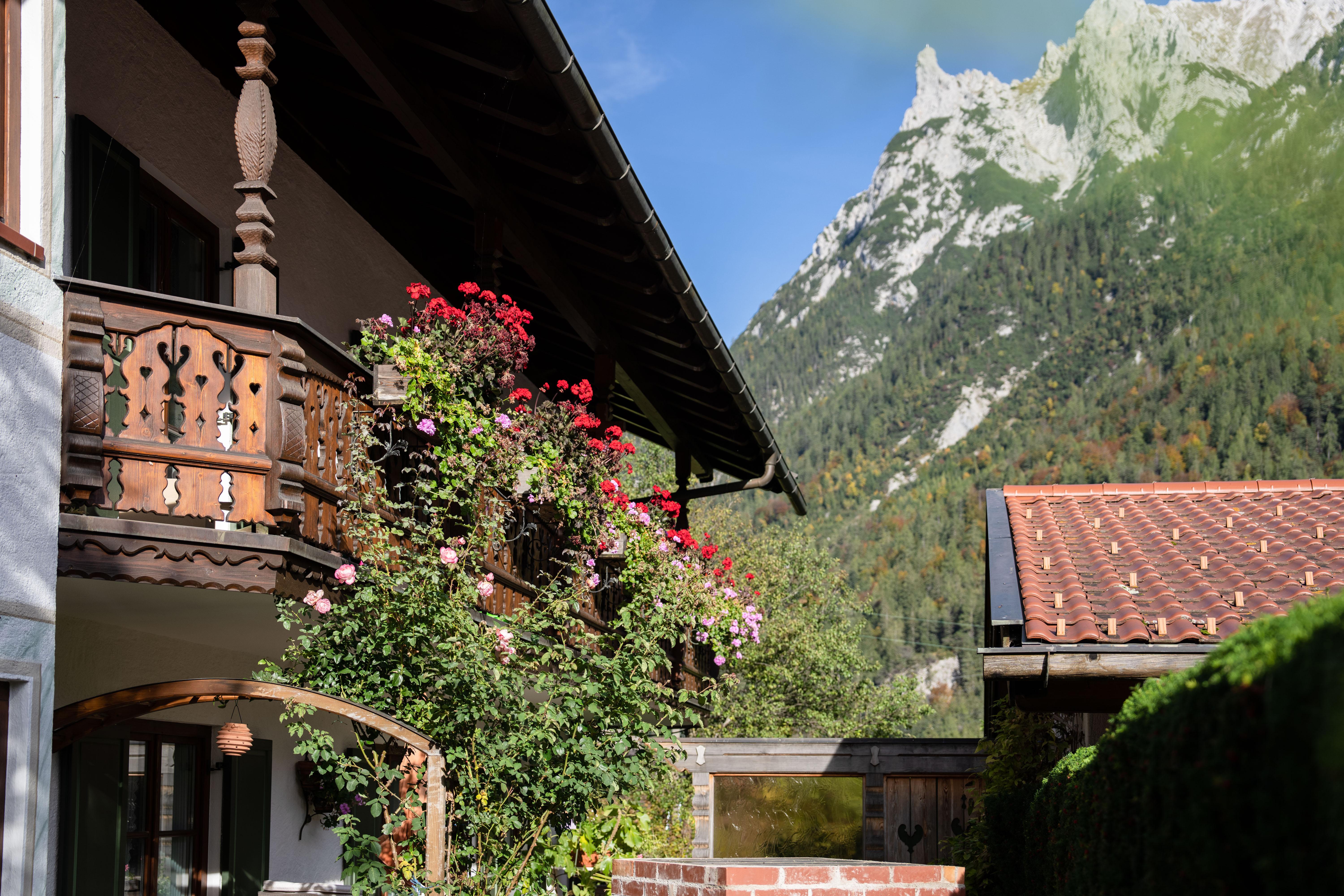 Ostbalkon mit Balkonmöbel und herrlichem Bergblick.