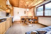 Wohnung für 2-3 Personen, 59m², Küche, Wohnschlafraum, 1 Schlafzimmer, Duschbad, separates WC, Sonnenbalkon mit Gartenmöbeln, Wiese, Schischuhtrockner, Parkplatz...