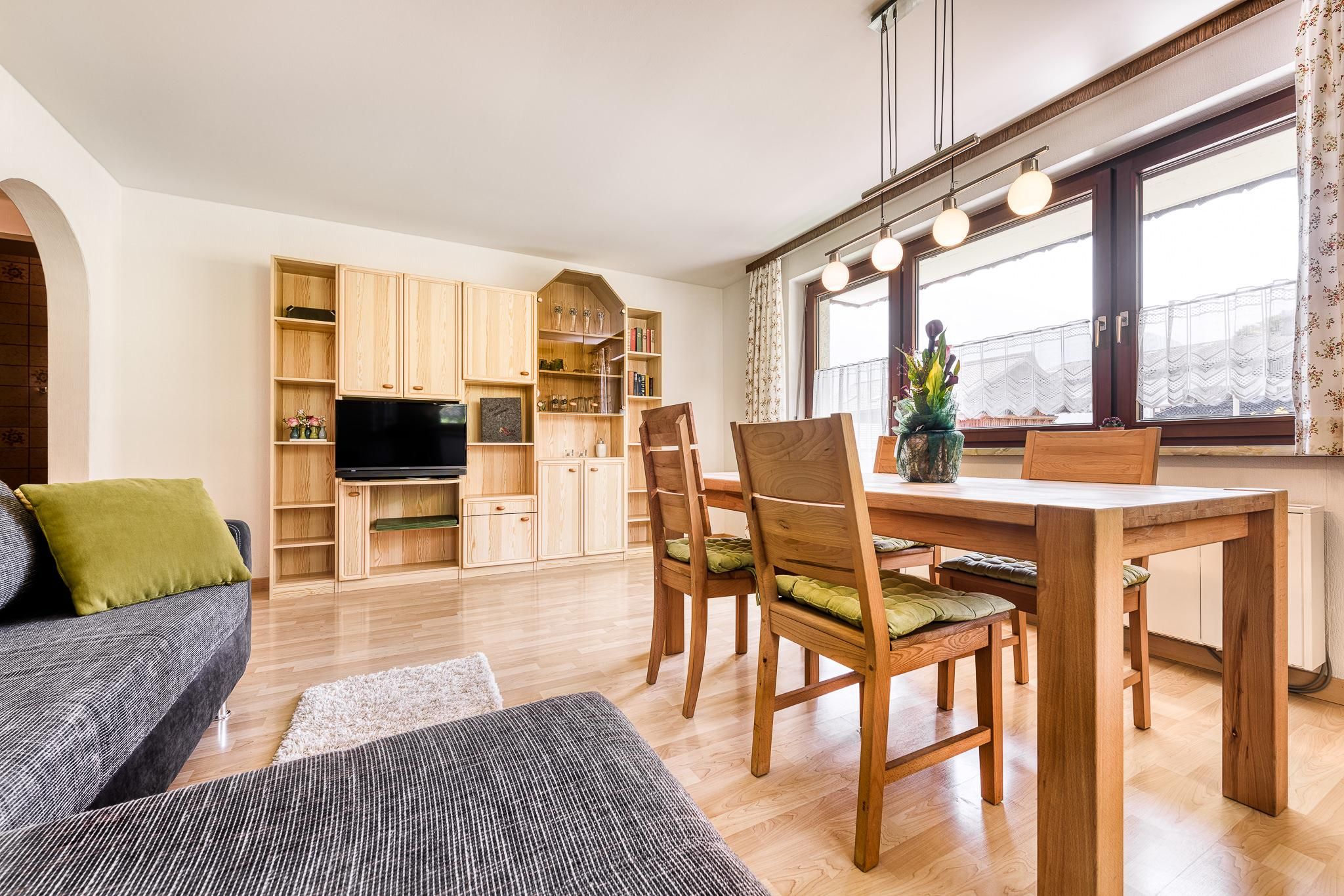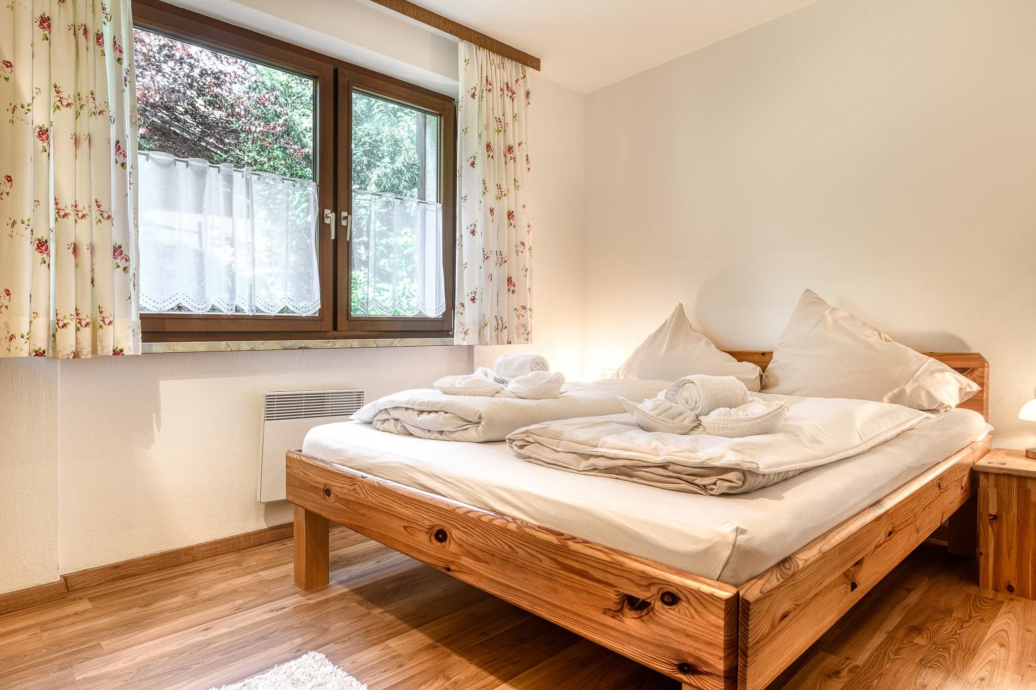 Wohnung für 2-4 Personen, 65m², Kochnische, Wohn-Schlafraum, 2 Schlafzimmer, Bad mit Dusche, separates WC, Balkon, Wiese, Schischuhtrockner, Parkplatz...
