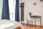 Das 2. Schlafzimmer verfügt über 2 Einzelbetten, die zusammengestellt werden können, sowie einen weiteren Arbeitsplatz.