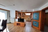 Im Wohn-Essbereich finden Sie eine Couch, einen Sessel, einen großen Esstisch mit Eckbank und eine voll ausgestattete Küche.