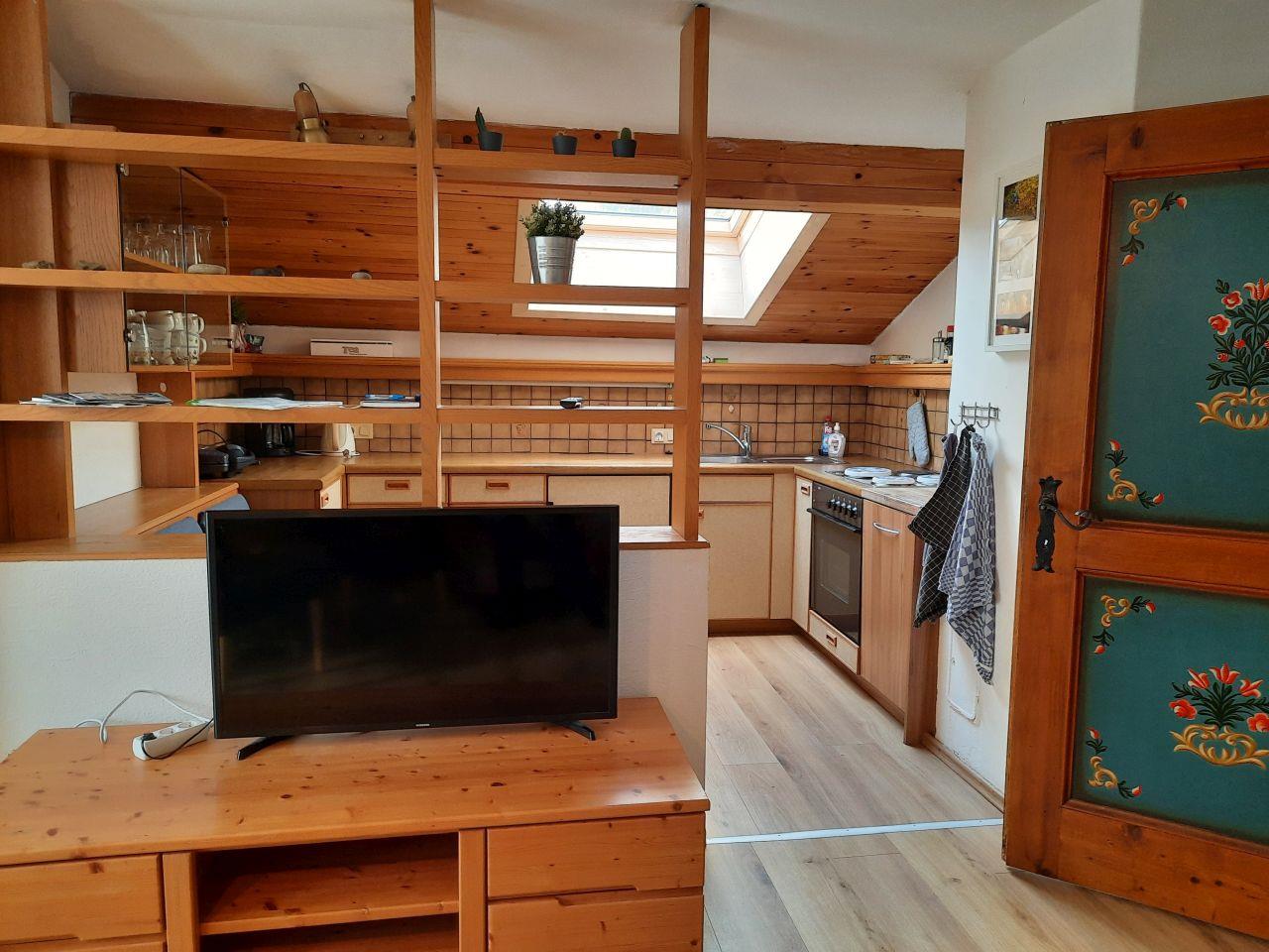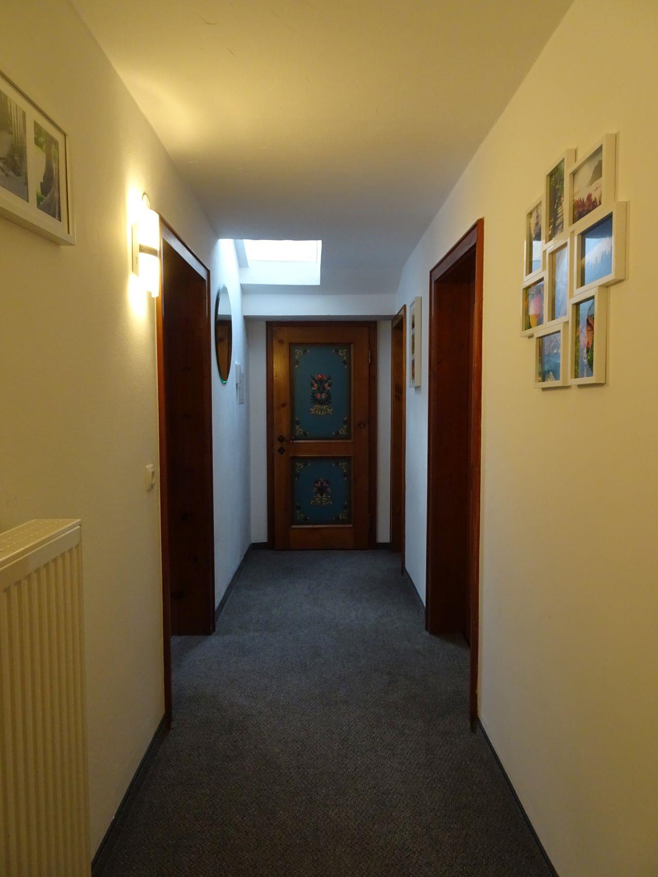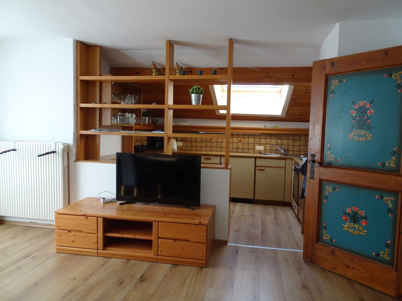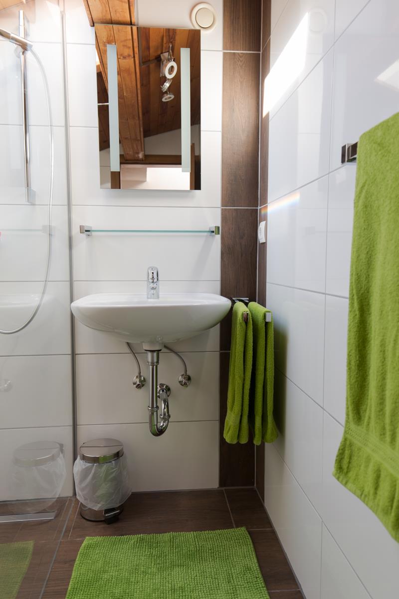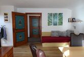 Wir verfügen über eine gemütliche 70 m² Ferienwohnung im Dachgeschoß für 1-5 Personen mit kleinem Balkon (Dachschräge in Küche und Badezimmer, Eingangsbereich und Türhöhe 1,85 m, normale Raumhöhe 2,30 m).