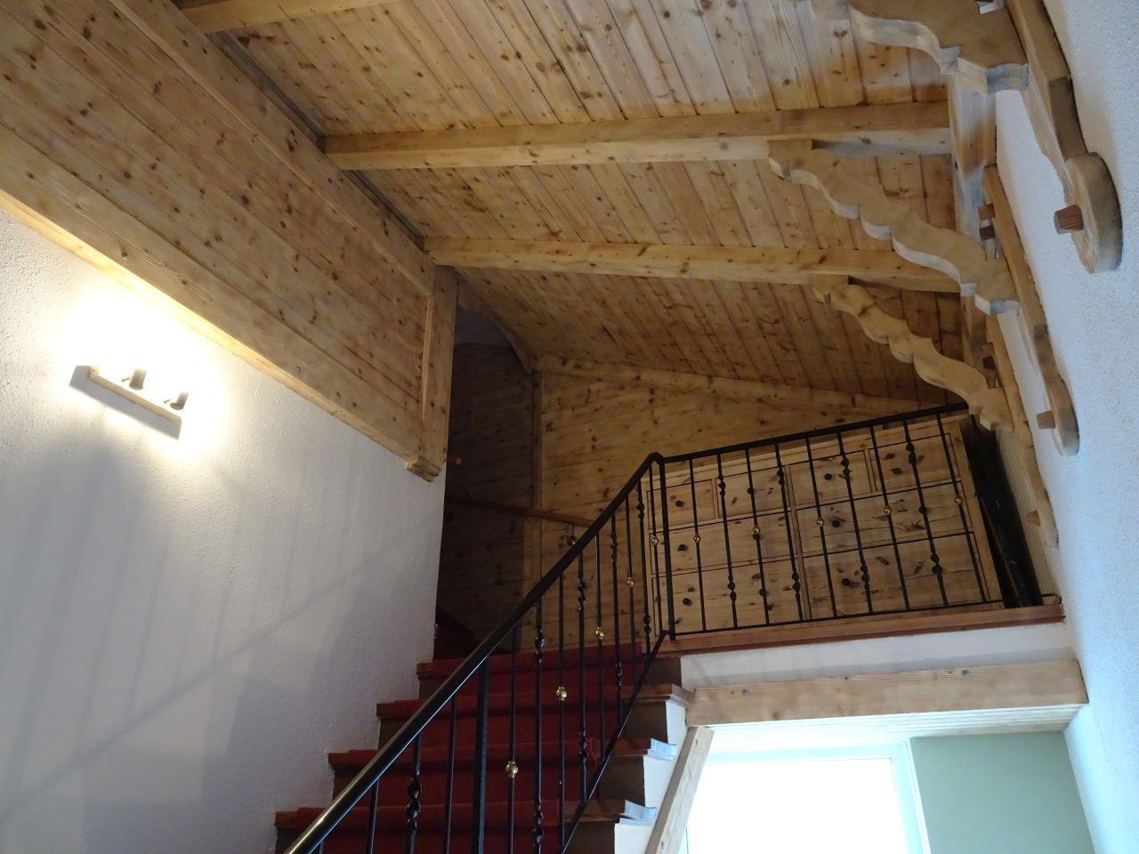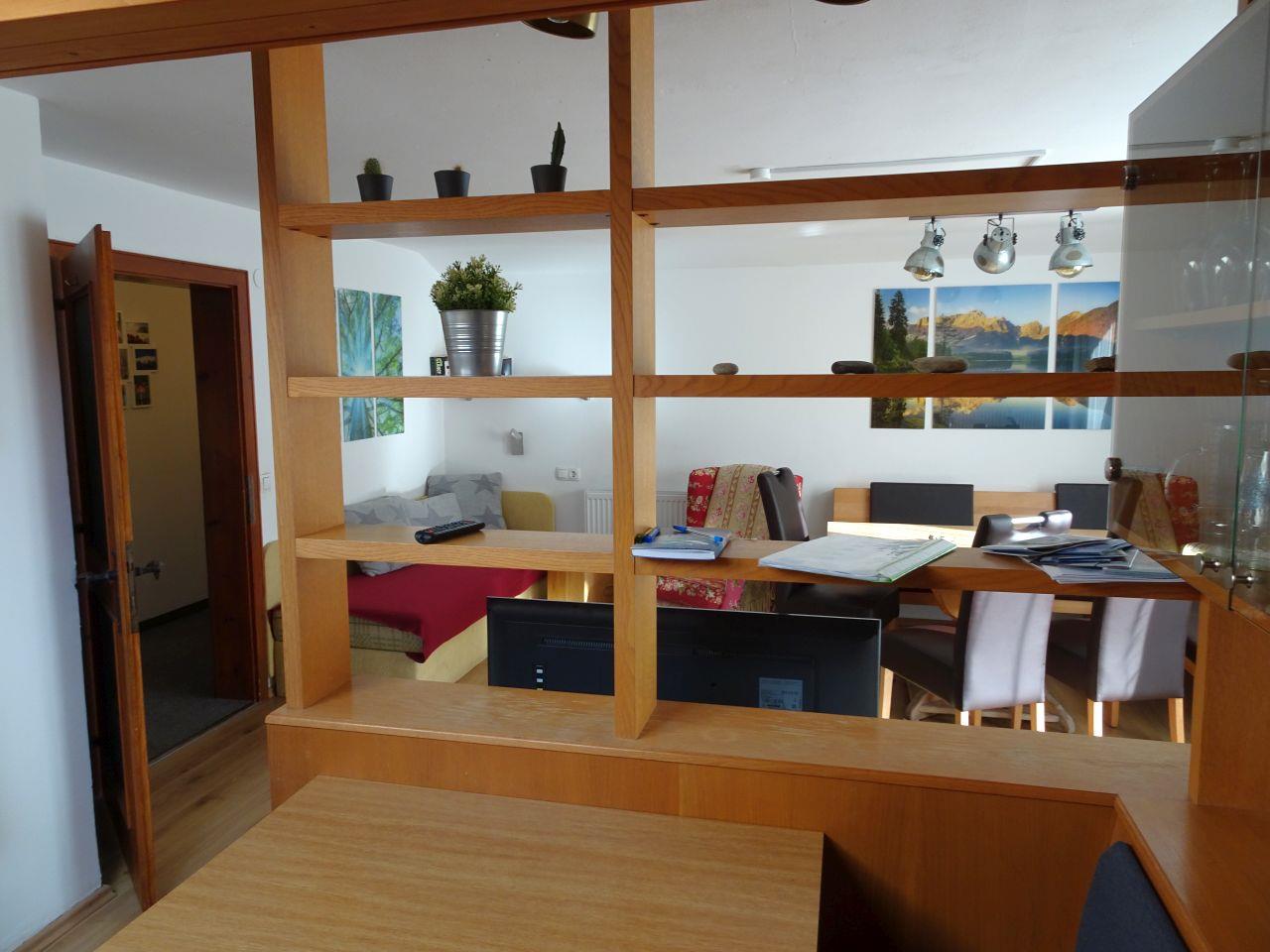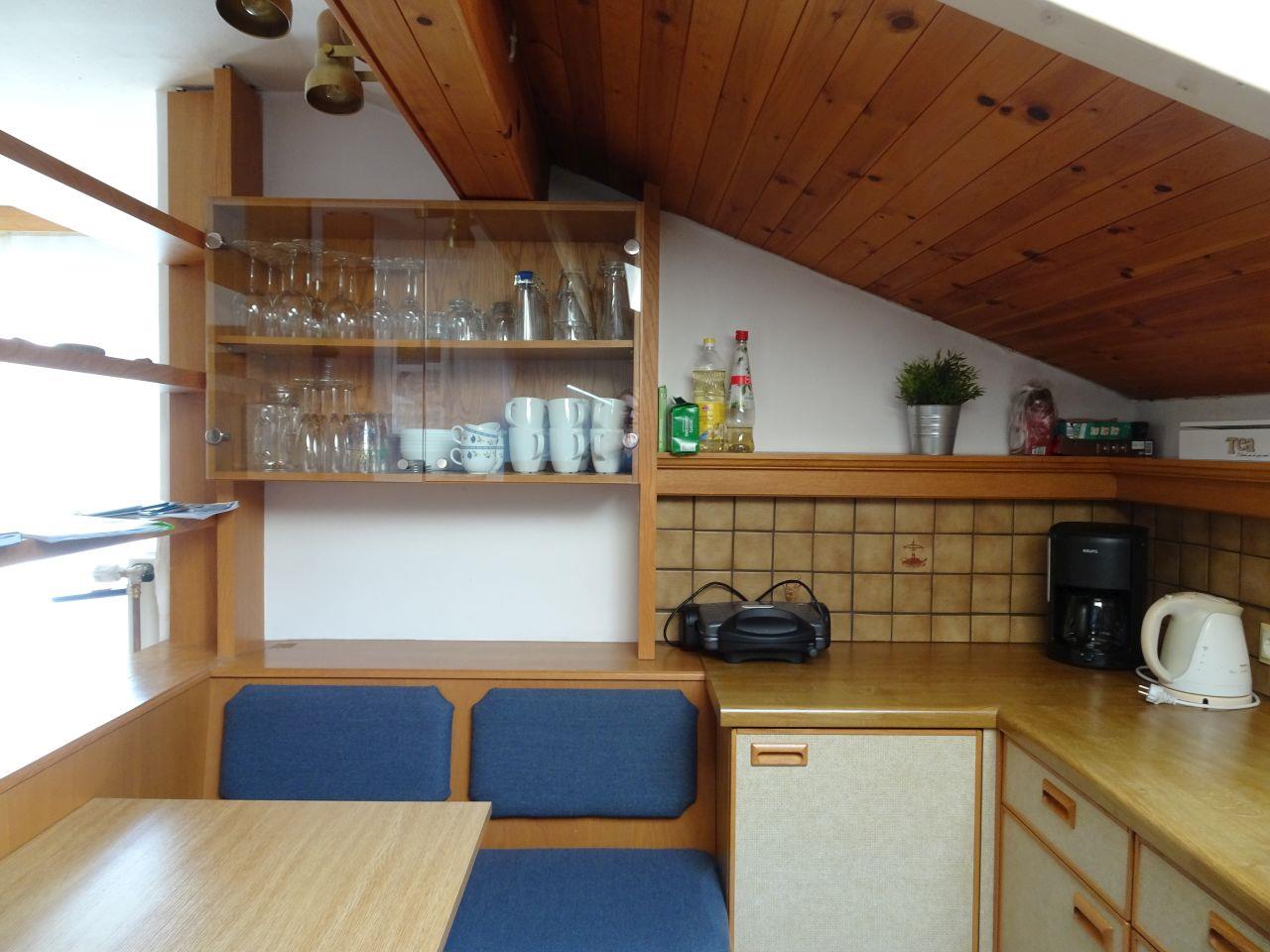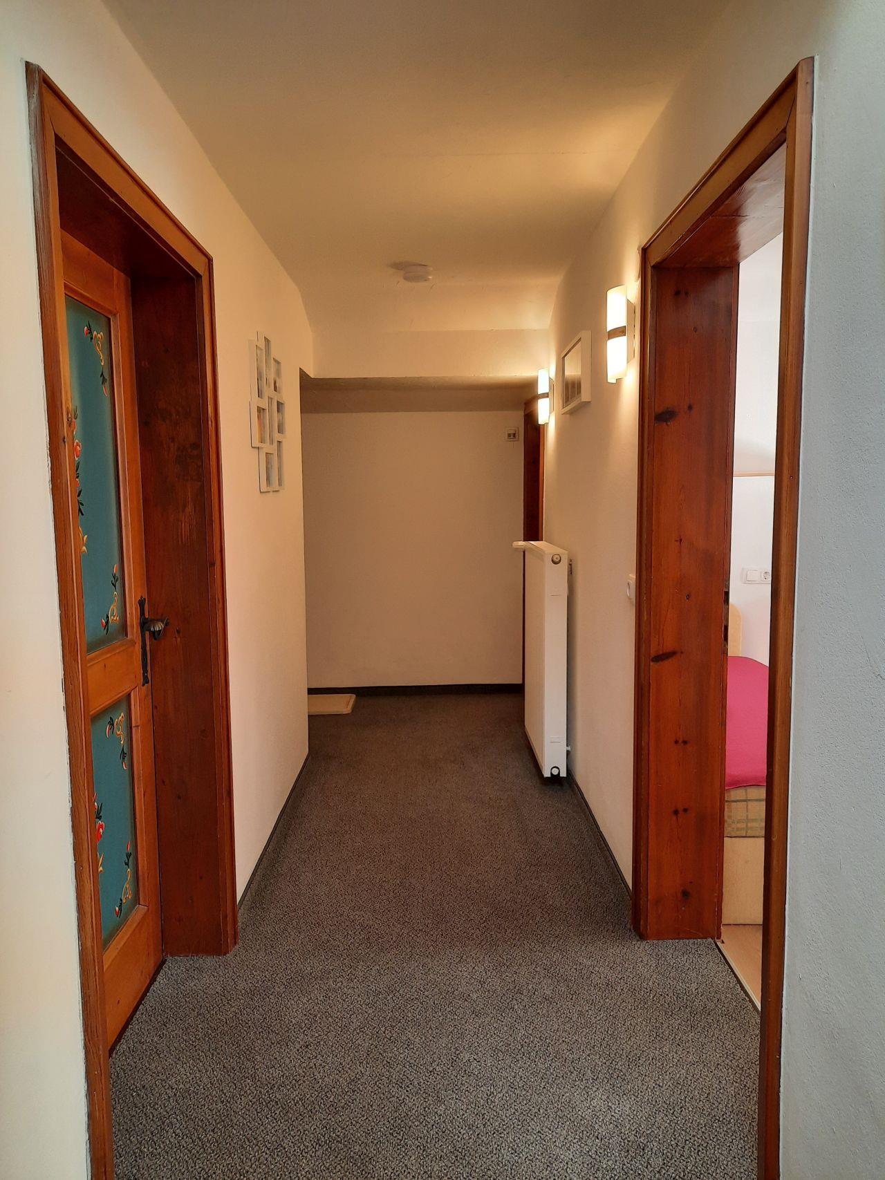 Wir verfügen über eine gemütliche 70 m² Ferienwohnung im Dachgeschoß für 1-5 Personen mit kleinem Balkon (Dachschräge in Küche und Badezimmer, Eingangsbereich und Türhöhe 1,85 m, normale Raumhöhe 2,30 m).