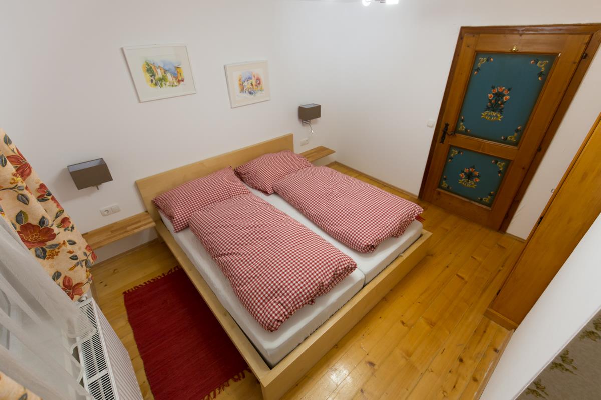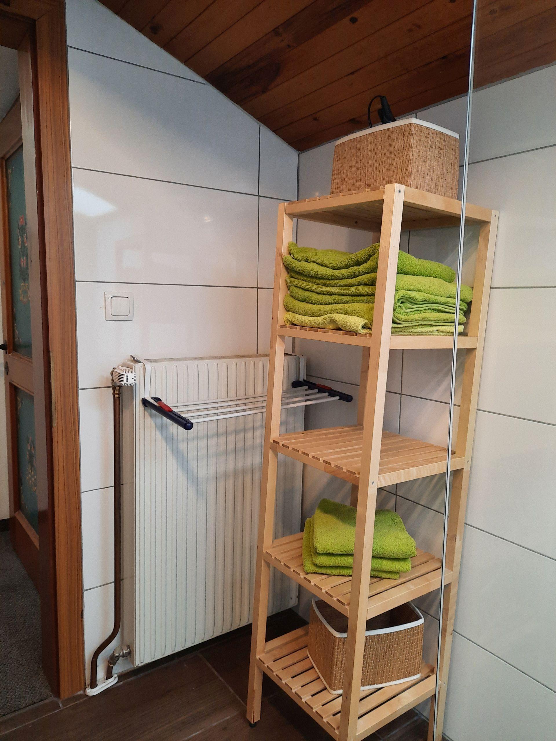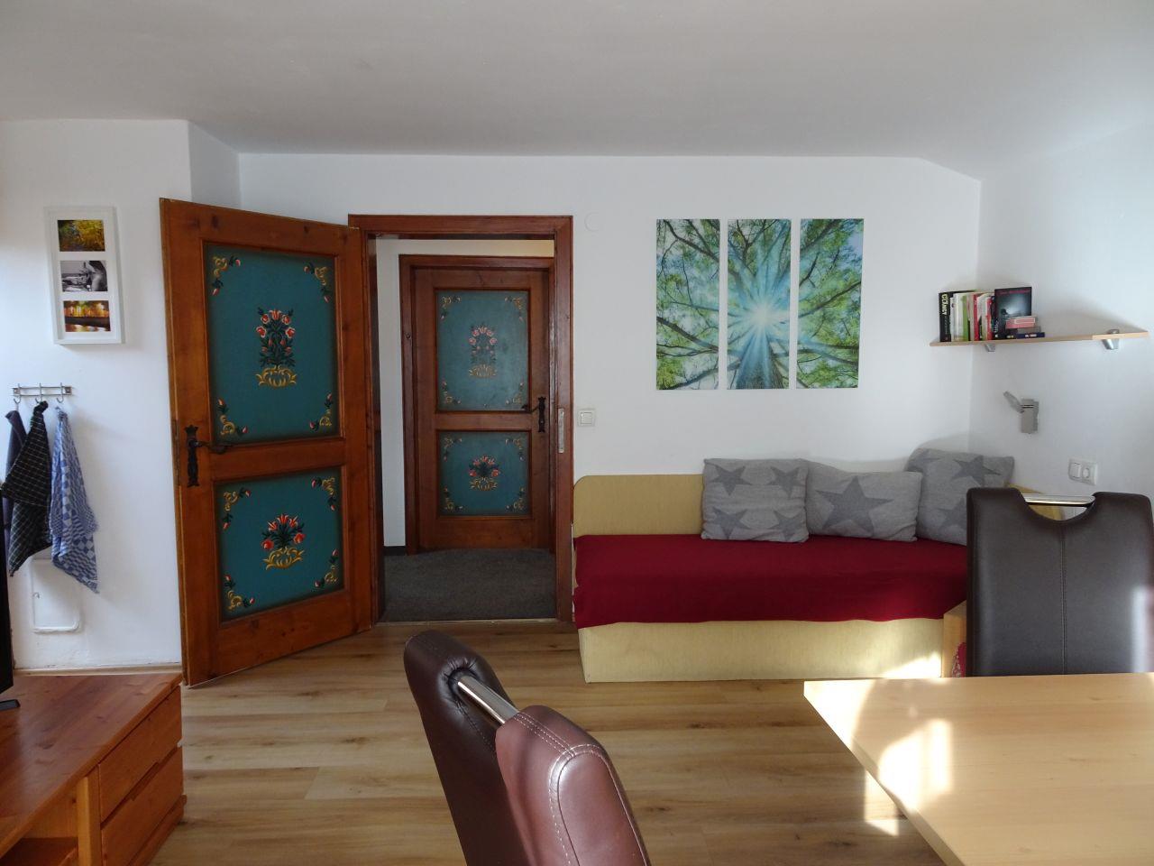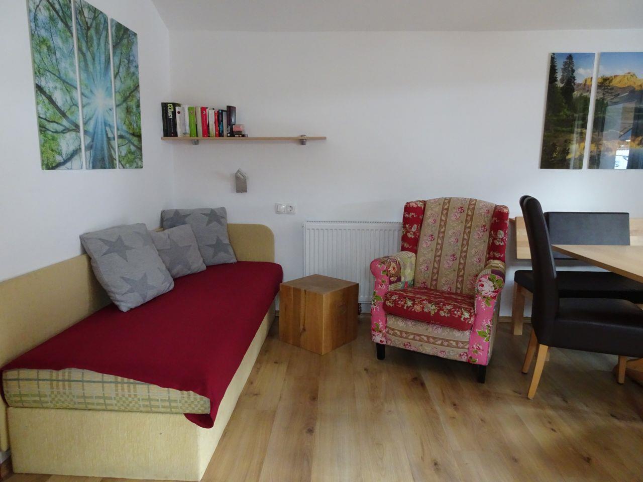 Wir verfügen über eine gemütliche 70 m² Ferienwohnung im Dachgeschoß für 1-5 Personen mit kleinem Balkon (Dachschräge in Küche und Badezimmer, Eingangsbereich und Türhöhe 1,85 m, normale Raumhöhe 2,30 m).