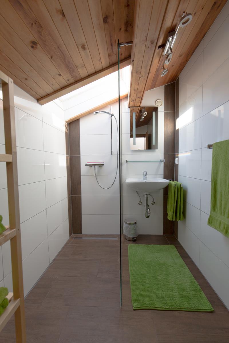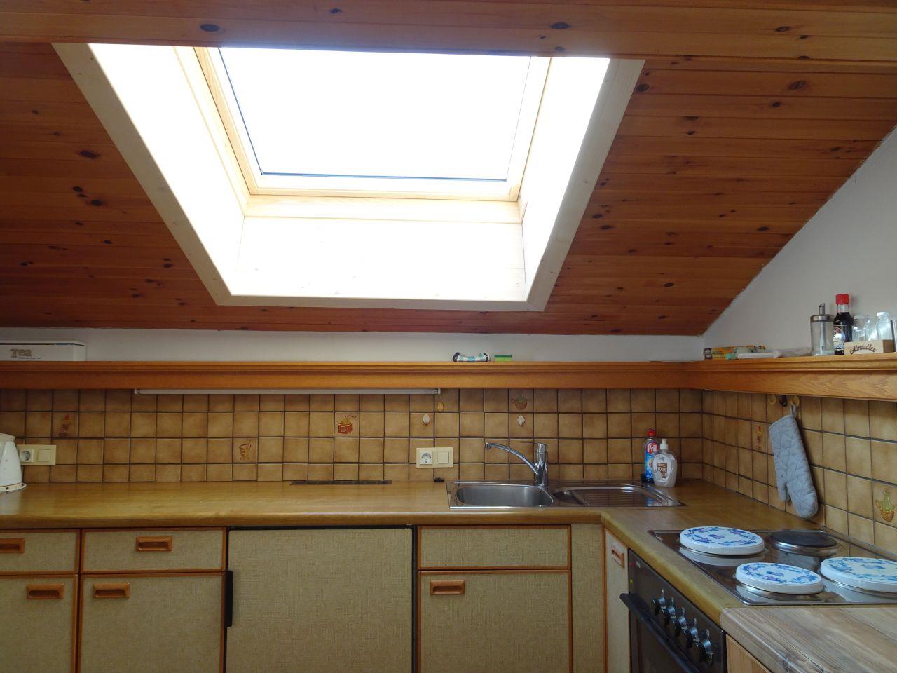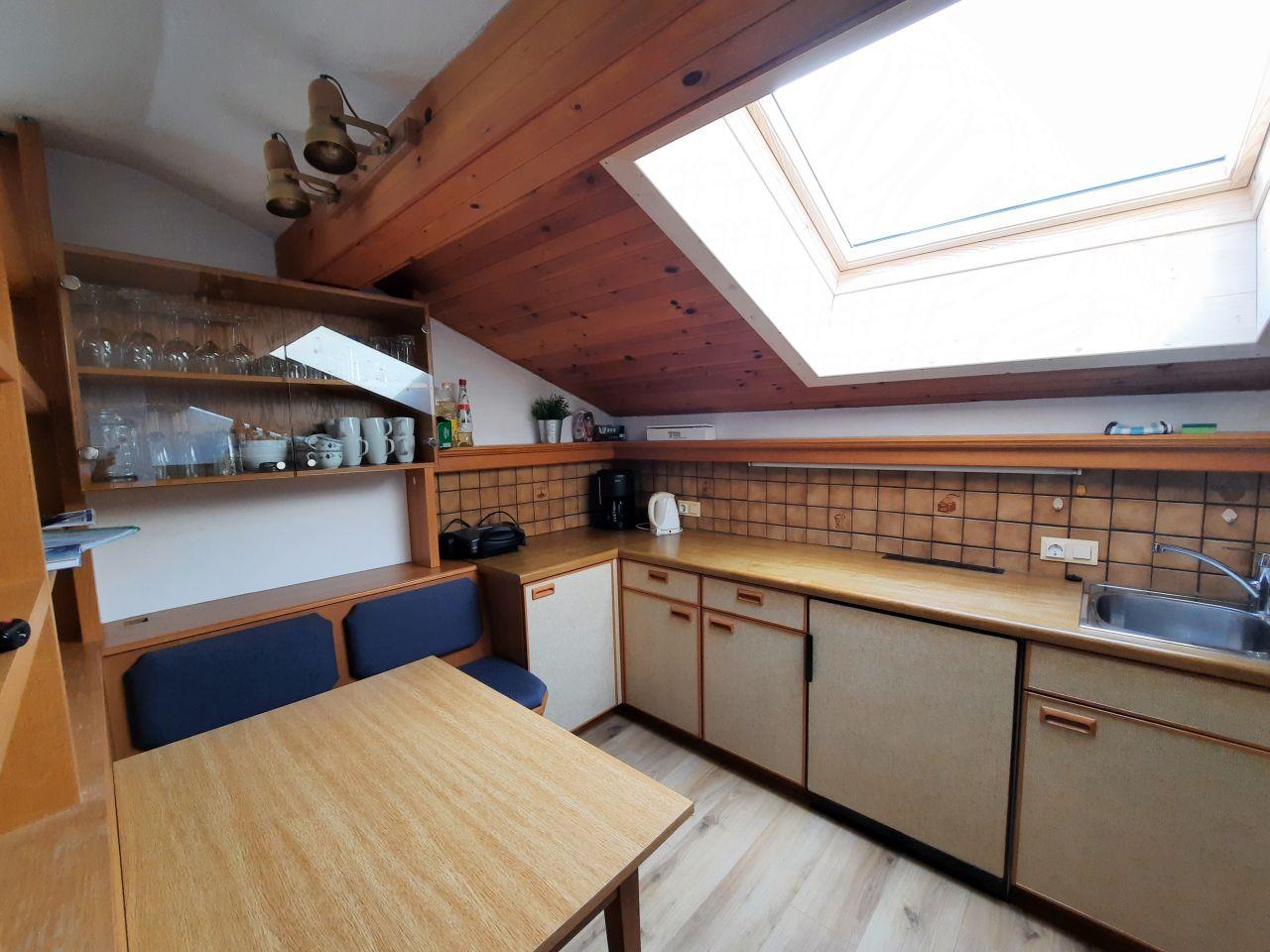 Gemütliche 70 m² Ferienwohnung im Dachgeschoß für 1-5 Personen (Dachschräge in Küche und Badezimmer, Eingangsbereich und Türhöhe ca. 1,85 m hoch, normale Raumhöhe 2,30 m hoch).