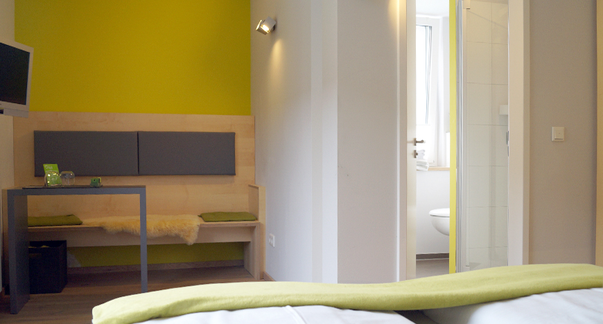 Unsere 2 Doppelzimmer überzeugen durch moderne Gemütlichkeit und bieten Platz für bis zu 2 Personen. Beide Zimmer befinden sich in der 1. Etage in unserem Haupthaus. Ausgestattet sind sie mit einem Doppelbett aus Schreinerhand, einer Sitzecke und einem geräumigen Badezimmer mit Dusche.