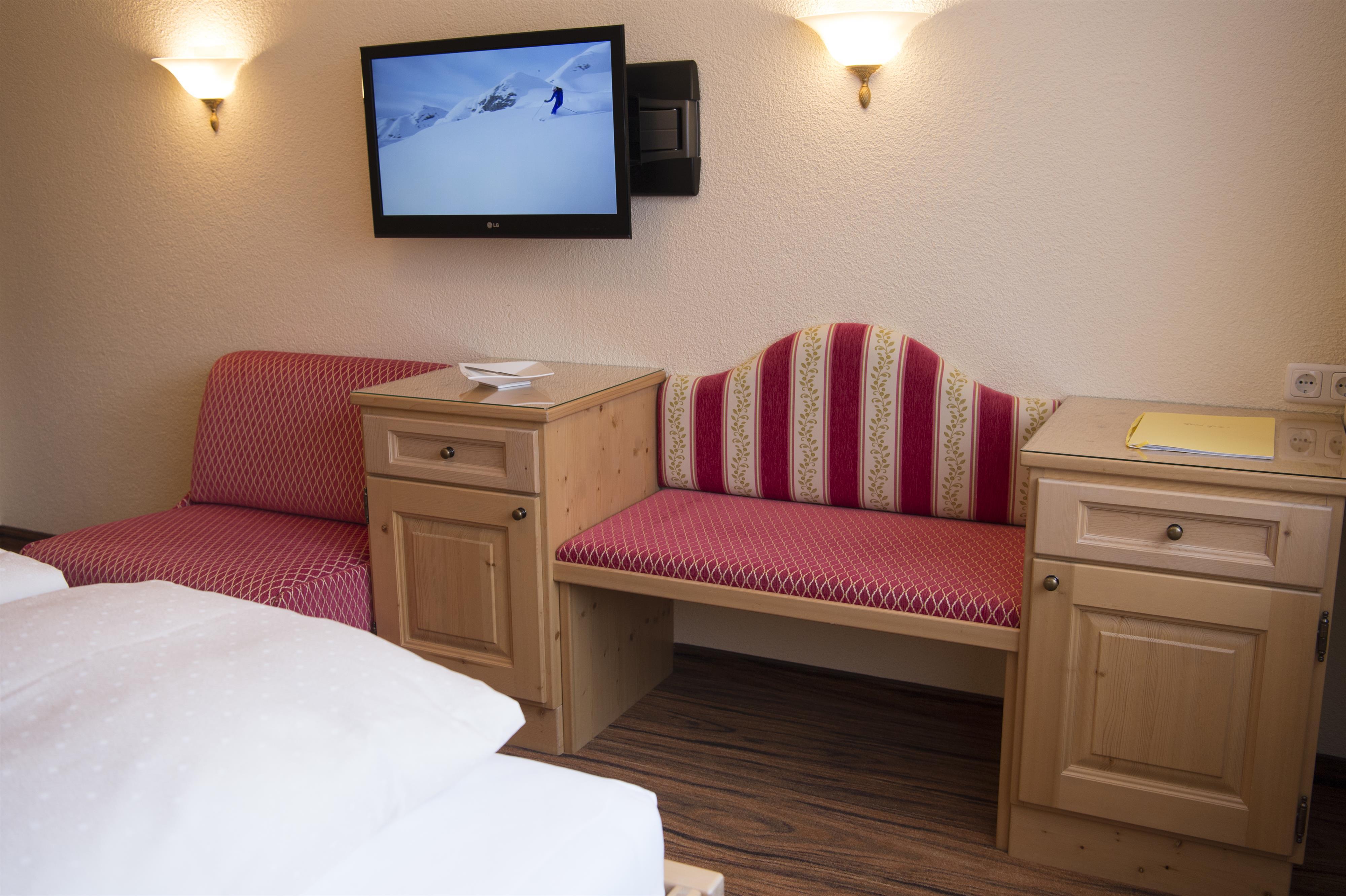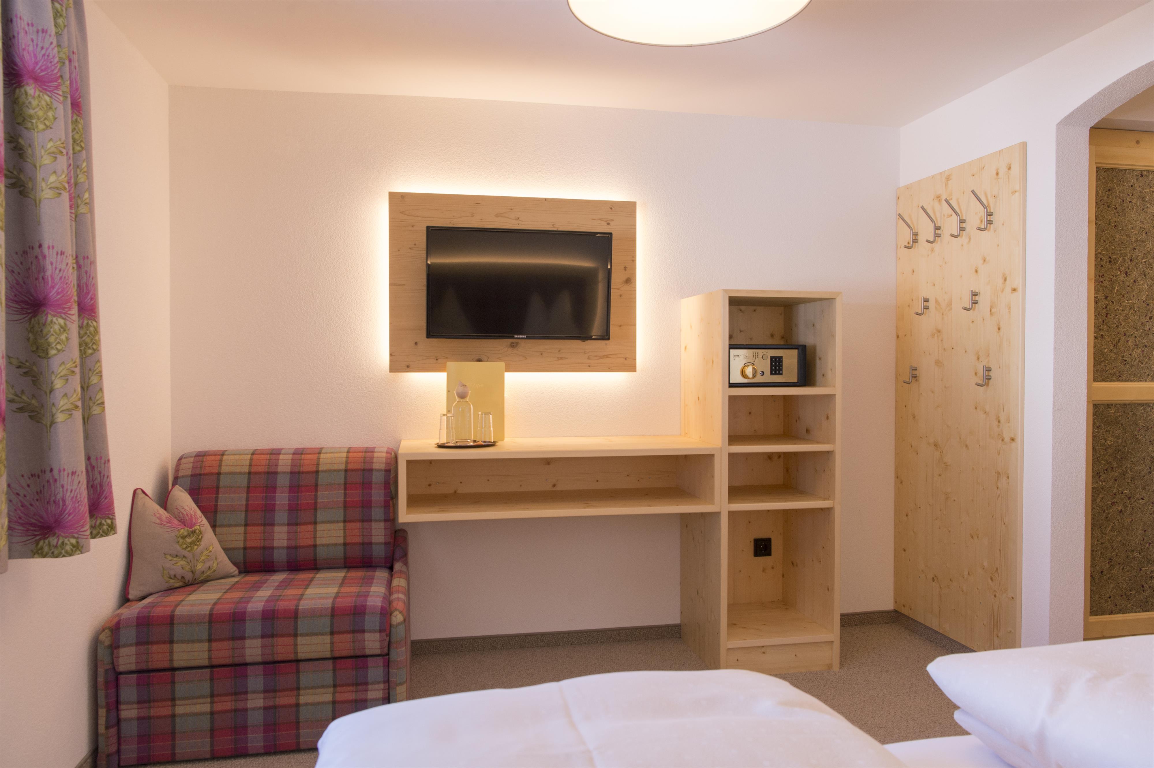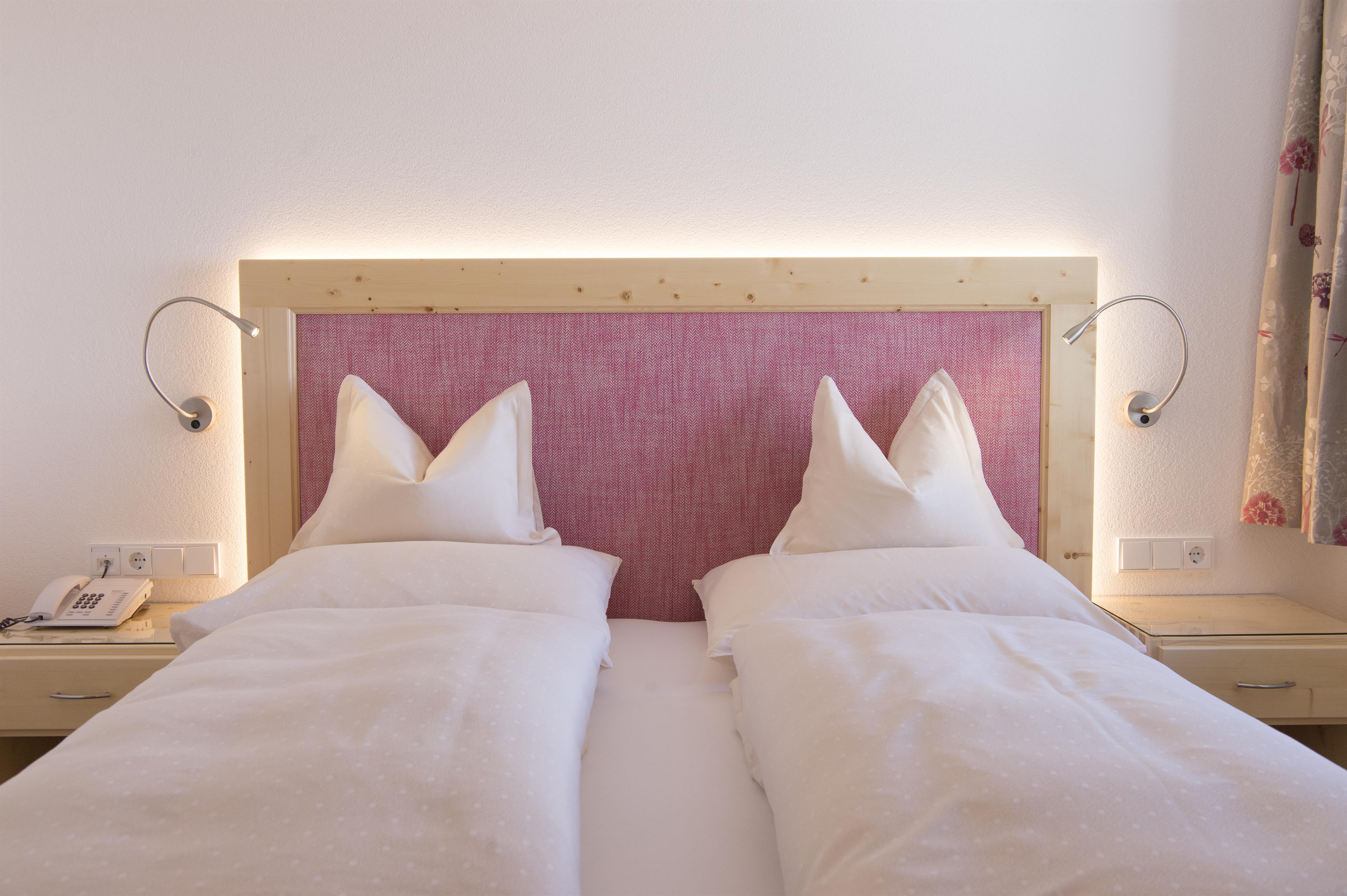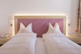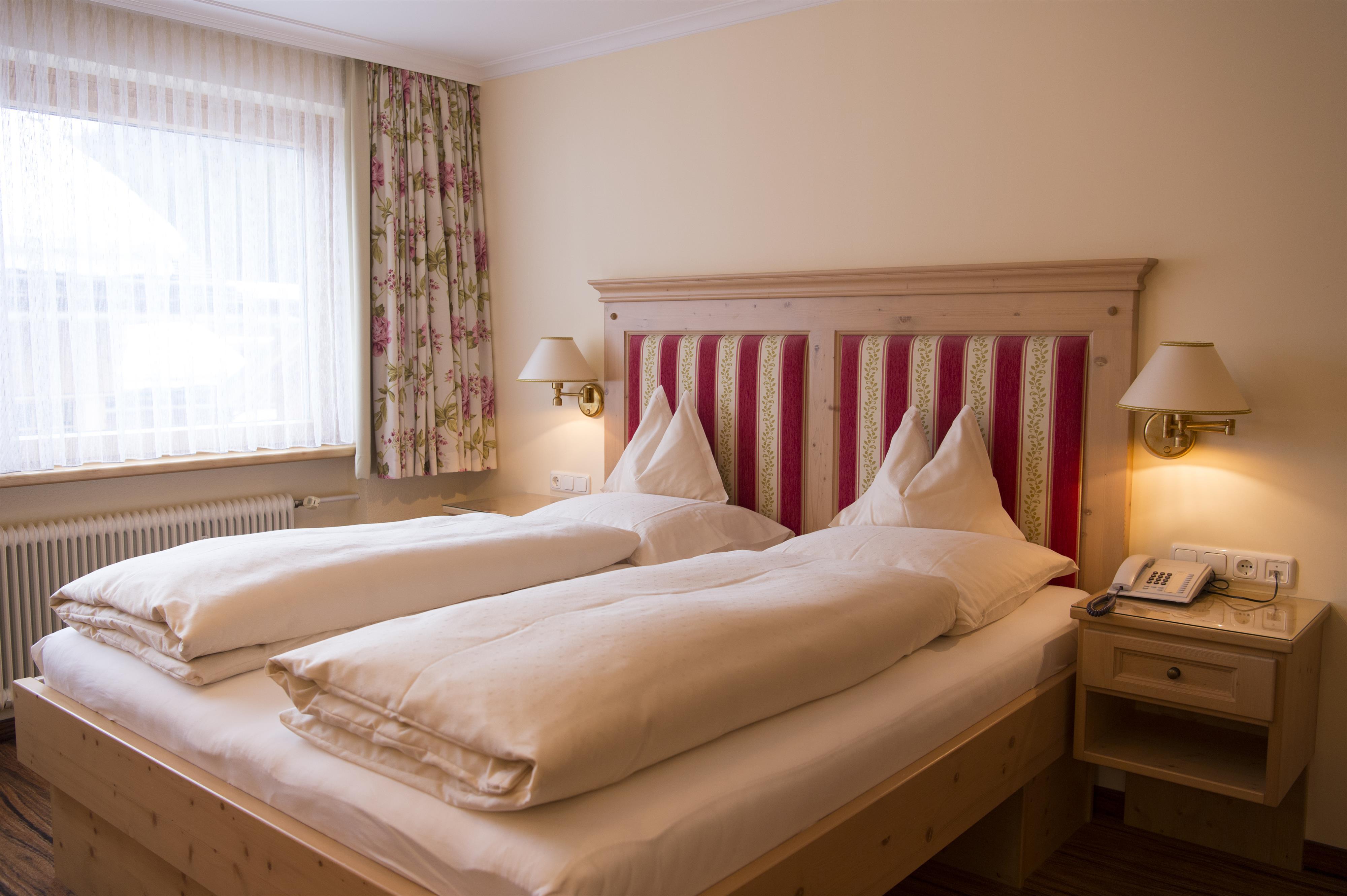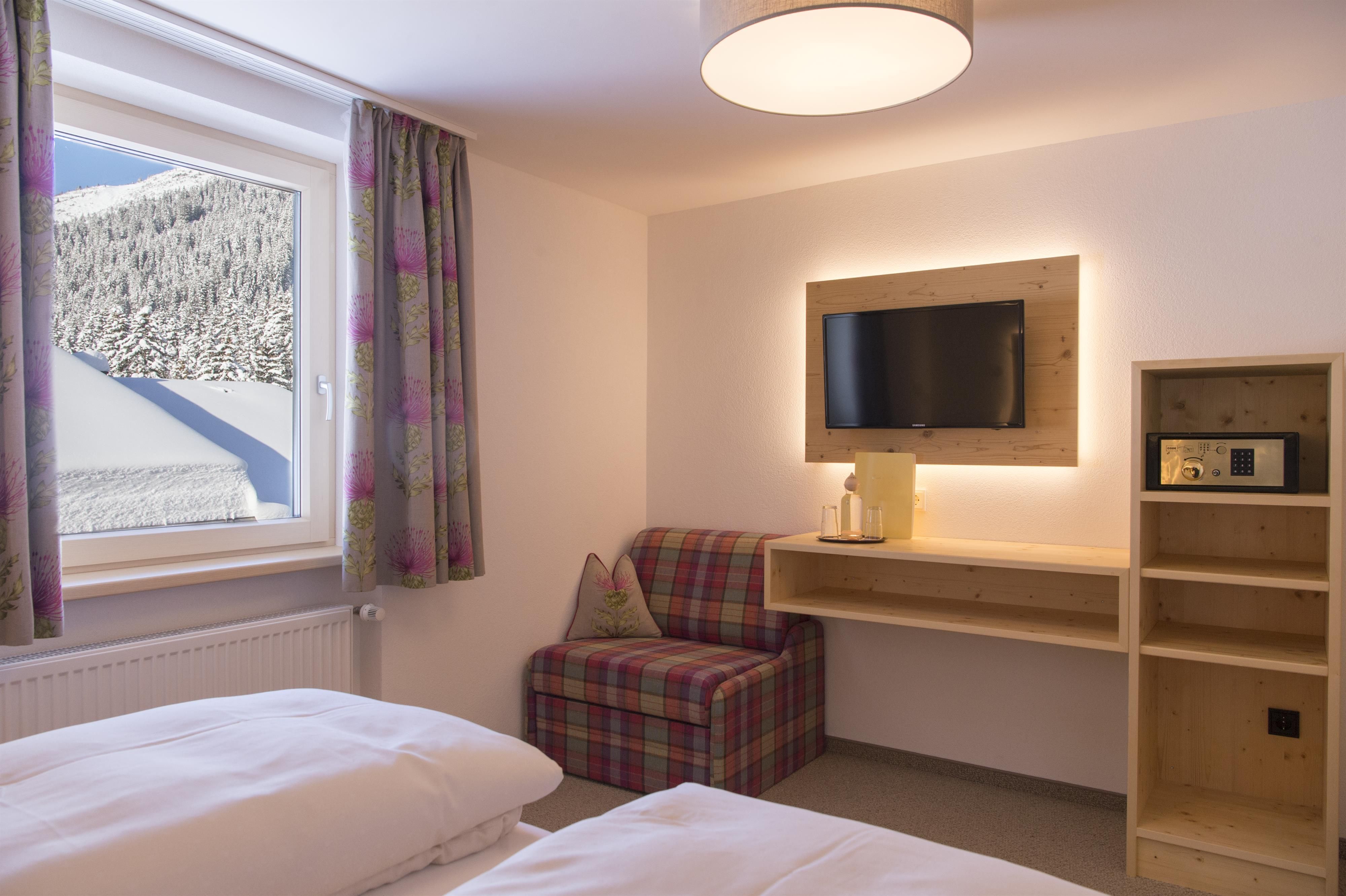 Die behaglichen Doppelzimmer haben Möbel aus Lecher Massivholz. Vom Balkon aus bietet sich der freie Blick auf Lech.