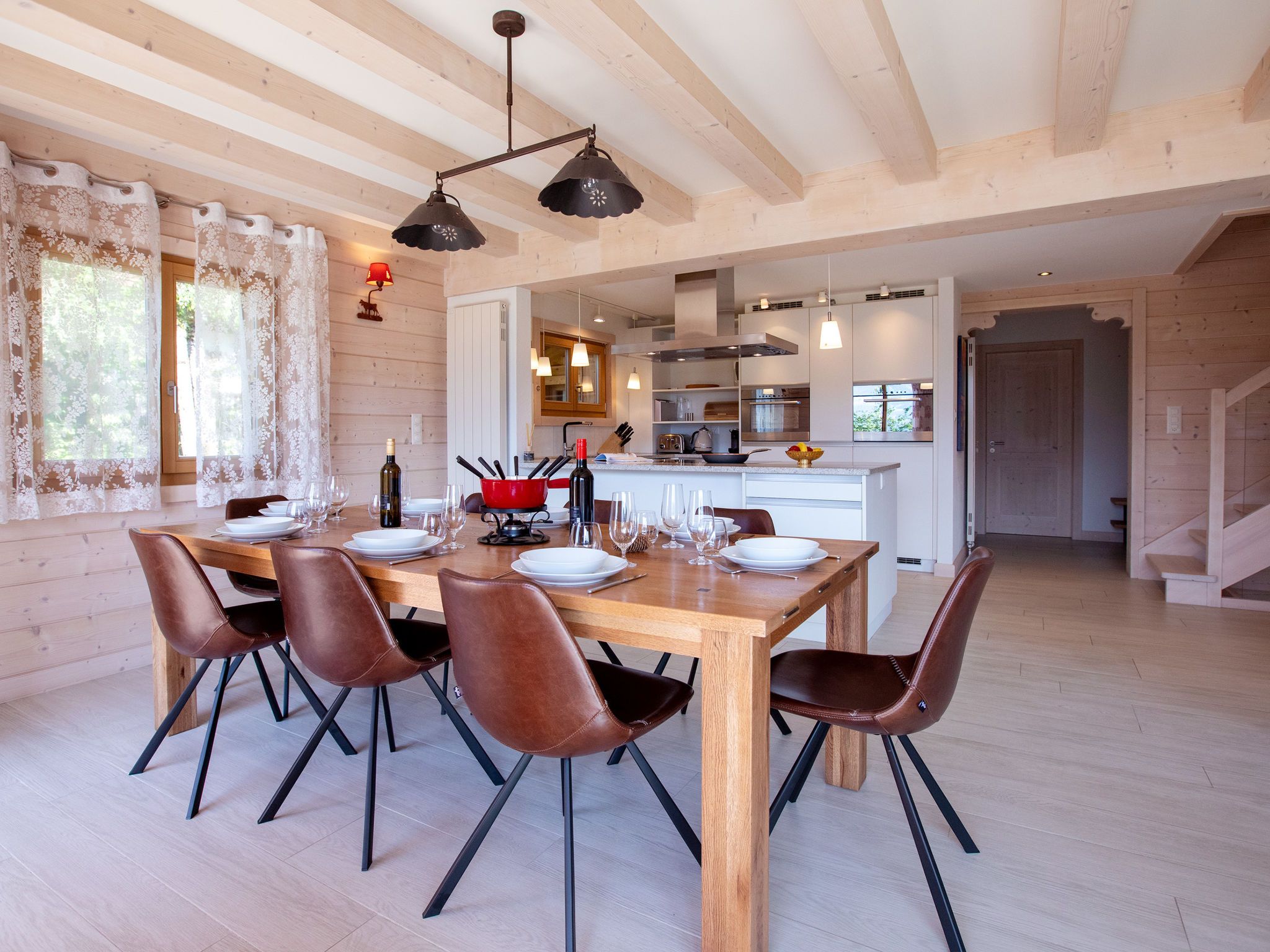 Chalet Domino, 6-Zimmer-Chalet 230 m2 auf 3 Stockwerken, Südlage. Renoviert, komfortabel und modern eingerichtet: grosses Wohn-/Esszimmer mit Schwedenofen. Ausgang zur Terrasse, Richtung Süden. 1 Zimmer mit 1 franz. Bett (1 x 160 cm). Offene Küche (Backofen, Geschirrspüler, 4 Induktionskochplatten, Toaster, Wasserkocher, elektrische Kaffeemaschine, Kapseln für die Kaffeemaschine (Nespresso) extra, Dampfgarer, Racletteofen, Fondue Set (Käse)). Bad/WC. Unteres Geschoss: 1 Zimmer mit 2 Betten (90 cm). Ausgang zur Veranda. 1 Zimmer mit 2 Betten (90 cm), Dusche/WC. Ausgang zur Veranda. Mit Veranda mit TV (Flachbildschirm). Ausgang zum Garten, Richtung Süden. Bad/WC. Obergeschoss: 1 Zimmer, niedrige Türrahmen, Höhe 160 cm mit 1 franz. Bett (1 x 160 cm), Dusche/Bidet/WC. Ausgang zum Balkon, Richtung Süden. Grosser Balkon, Südlage, kleiner Balkon, Südlage, Garten. Balkonmöbel, Gartengrill. Sehr schöne Panoramasicht auf die Berge. Zur Verfügung: Waschmaschine, Wäschetrockner, Haartrockner. Internet (WLAN, gratis). Parkplatz (2 Autos), Garage (1 Auto). Bitte beachten: Nichtraucher-Haus. 283.74.3880-1
