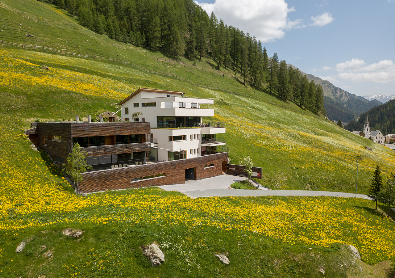 Das erste Haus an traumhaft, ruhiger und sonniger Hanglage direkt an der Talabfahrt Alp-Trida-Laret. Exklusive 2- und 3-Zimmerwohnungen mit Wellnessbereich, Sauna, Soledampfbad und grossem Ruheraum. Lift im Haus. Kostenloser Abstellplatz in unserer Tiefgarage.