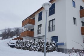 Ein Parkplatz pro Wohnung befindet sich vor dem Haus.